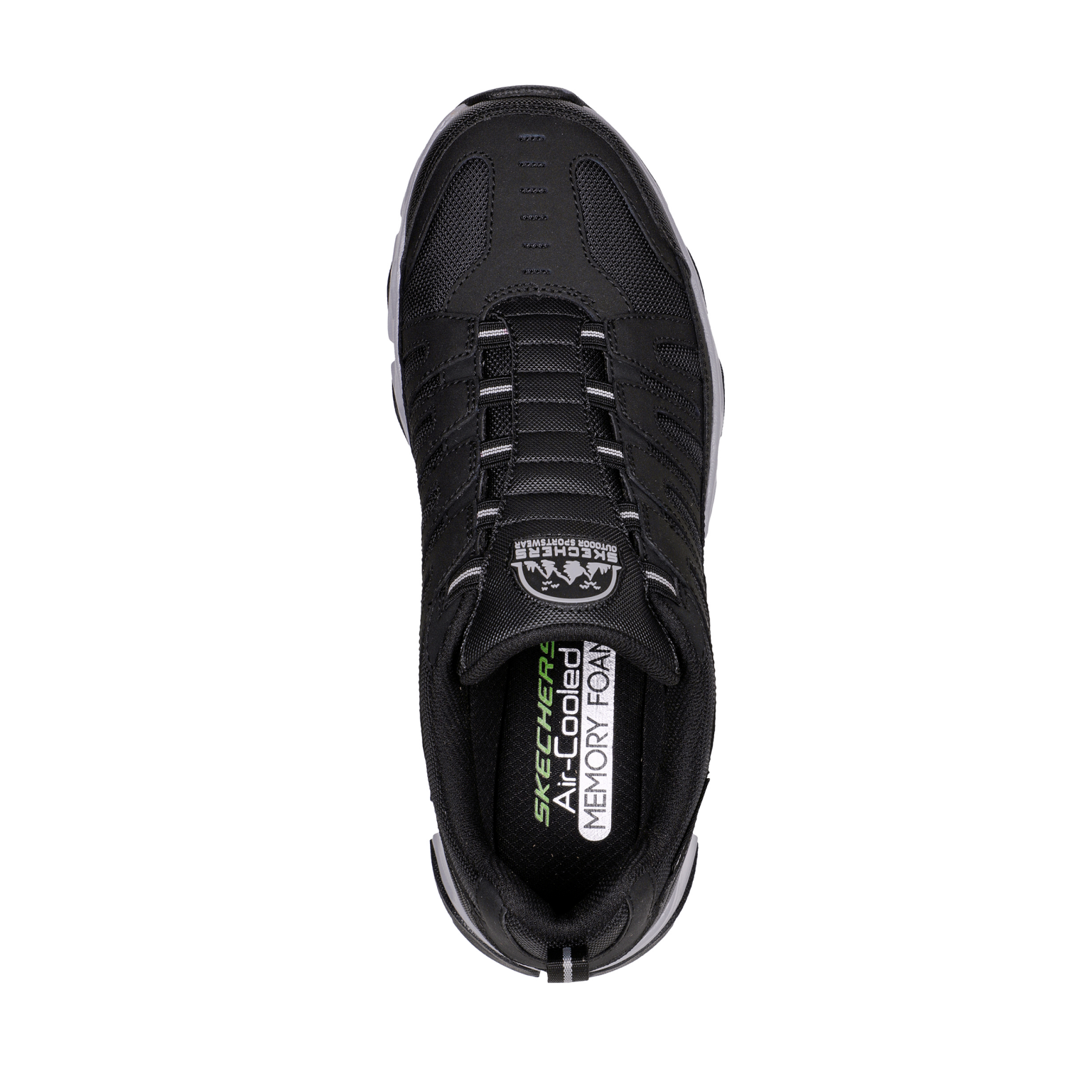 Take the steeper path in the rugged outdoor style and comfort of Skechers Relaxed FitR Crossbar Cedar. This slipon outdoor trail design features a leather and mesh upper with a Skechers AirCooled Mem…