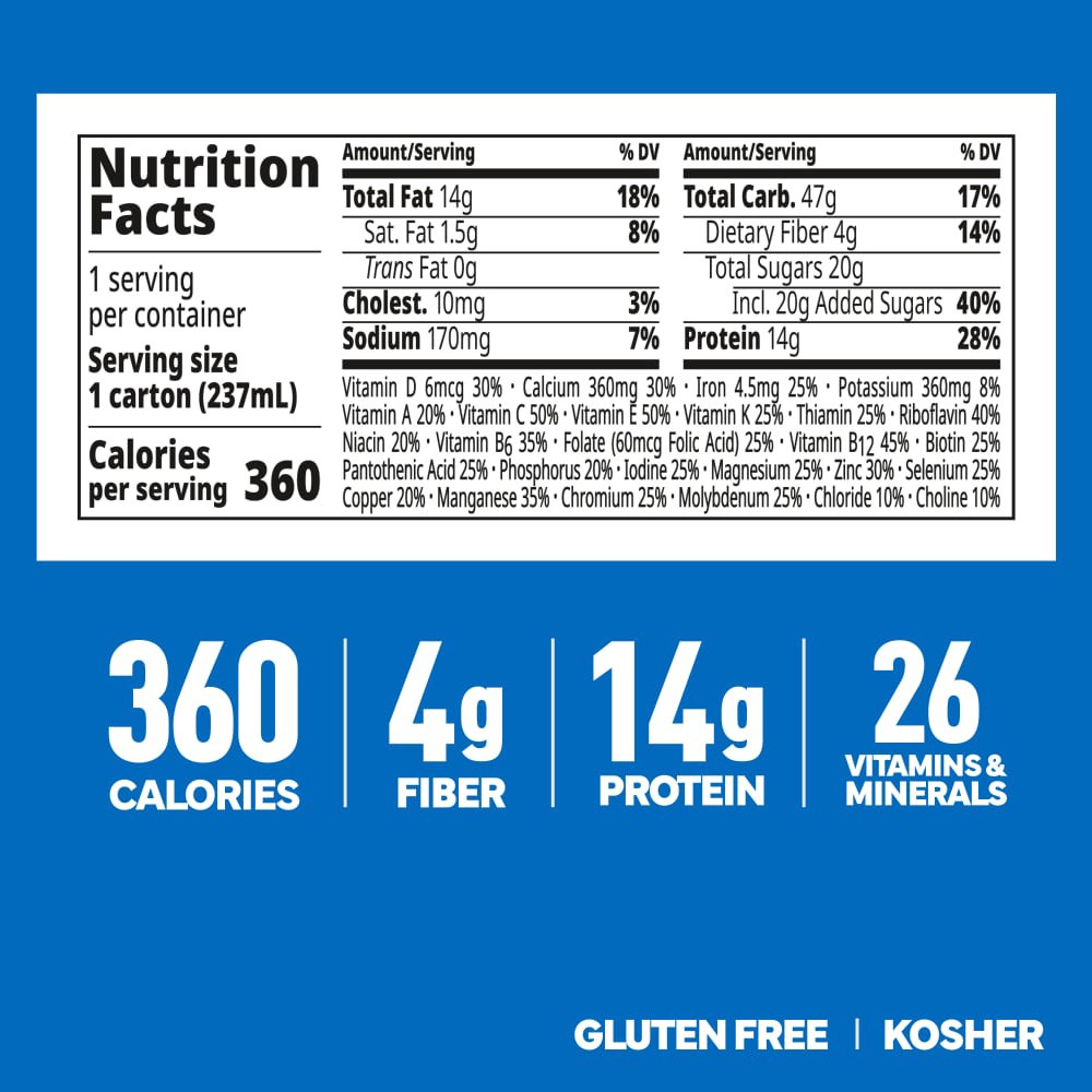 - Each BOOST protein shake delivers 14g of high-quality protein to help maintain muscle health; along with 4g of fiber to support digestive health; making it an ideal high-protein snack or part of your daily nutrient needs.