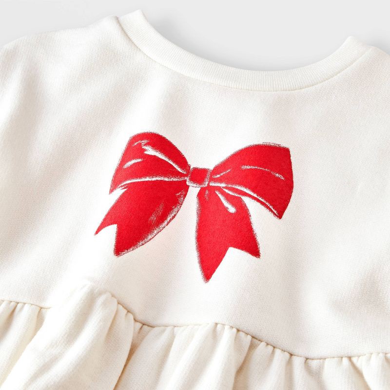 Baby Girls' 2pc Holiday Bow Fleece Sweatshirt and Gingham Leggings Set - Cat & Jack™ Cream 12M