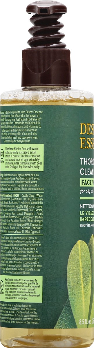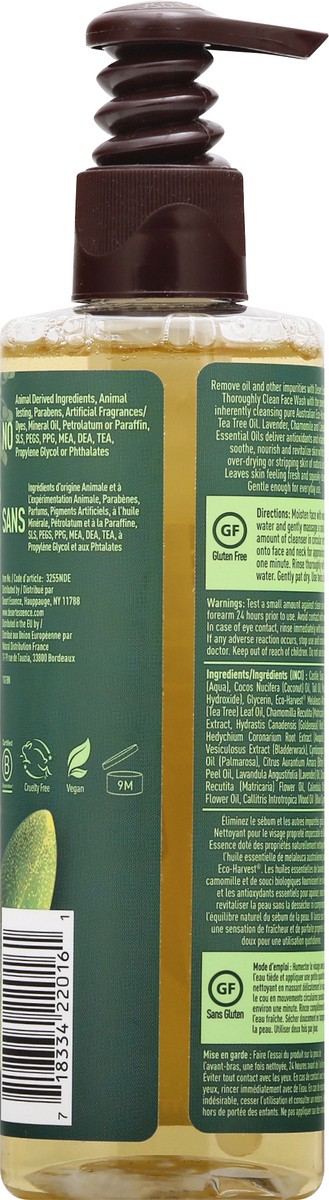 Gluten free. Vegan. Non GMO certified by NSF. www.nsfnongmo.com. For oily skin. With pure Australian tea tree oil. Remove oil and other impurities with Desert Essence Thoroughly Clean Face Wash with t…