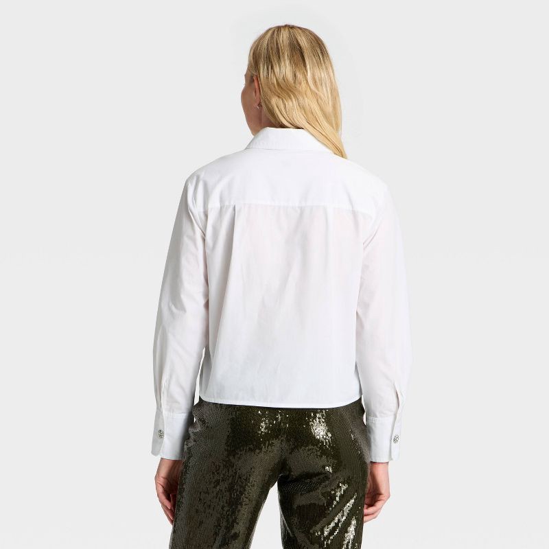 Women's Long Sleeve Embellished Button-Down Shirt - A New Day™ White XS