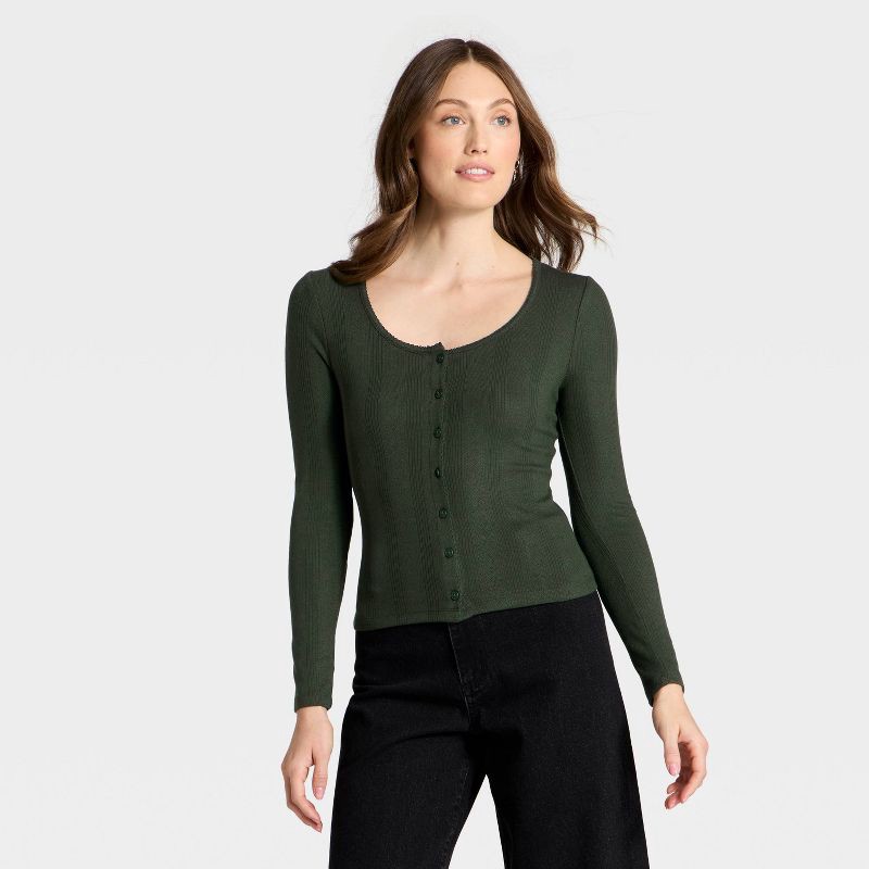 Women's Button-Down Knit Cardigan - Universal Thread™ Dark Green XS