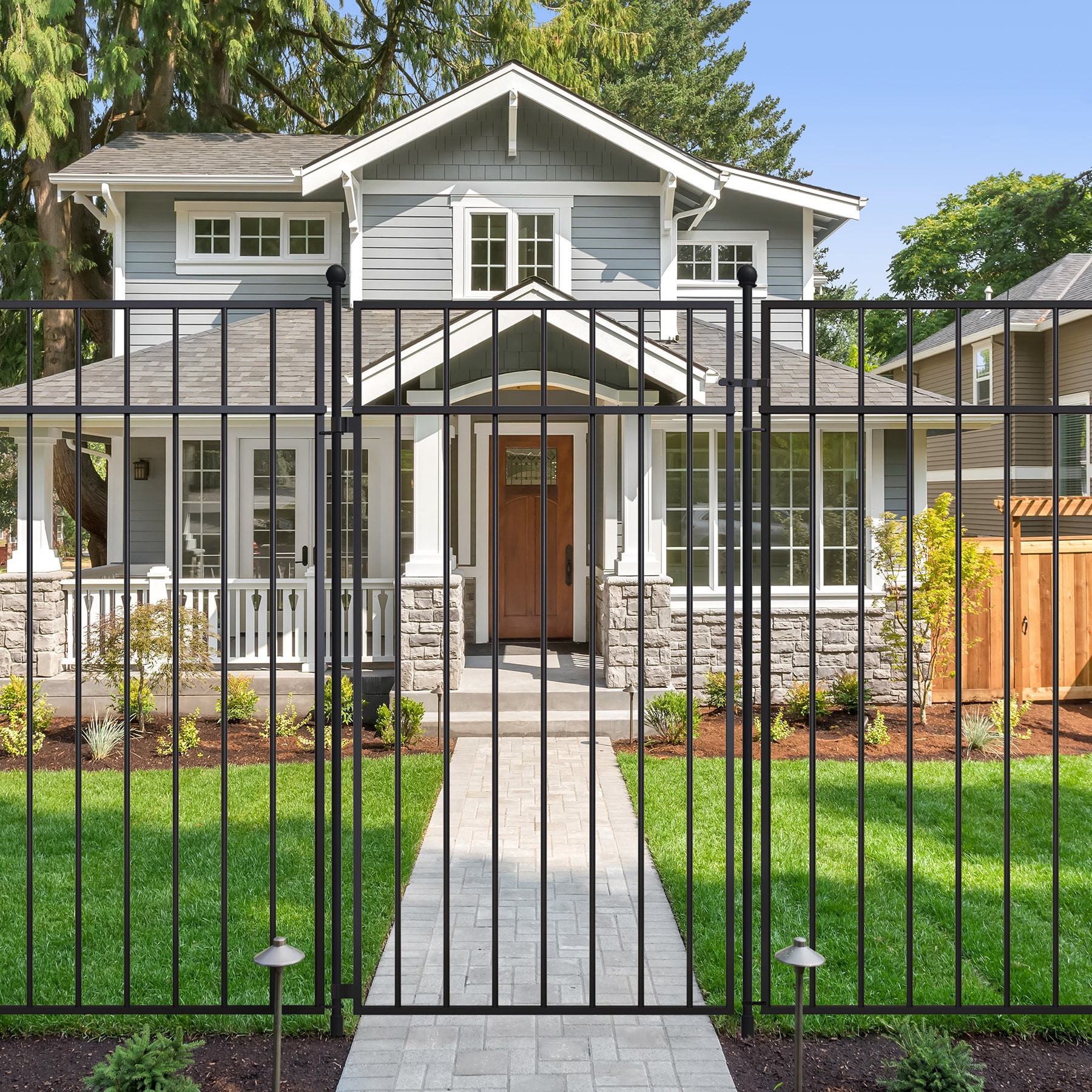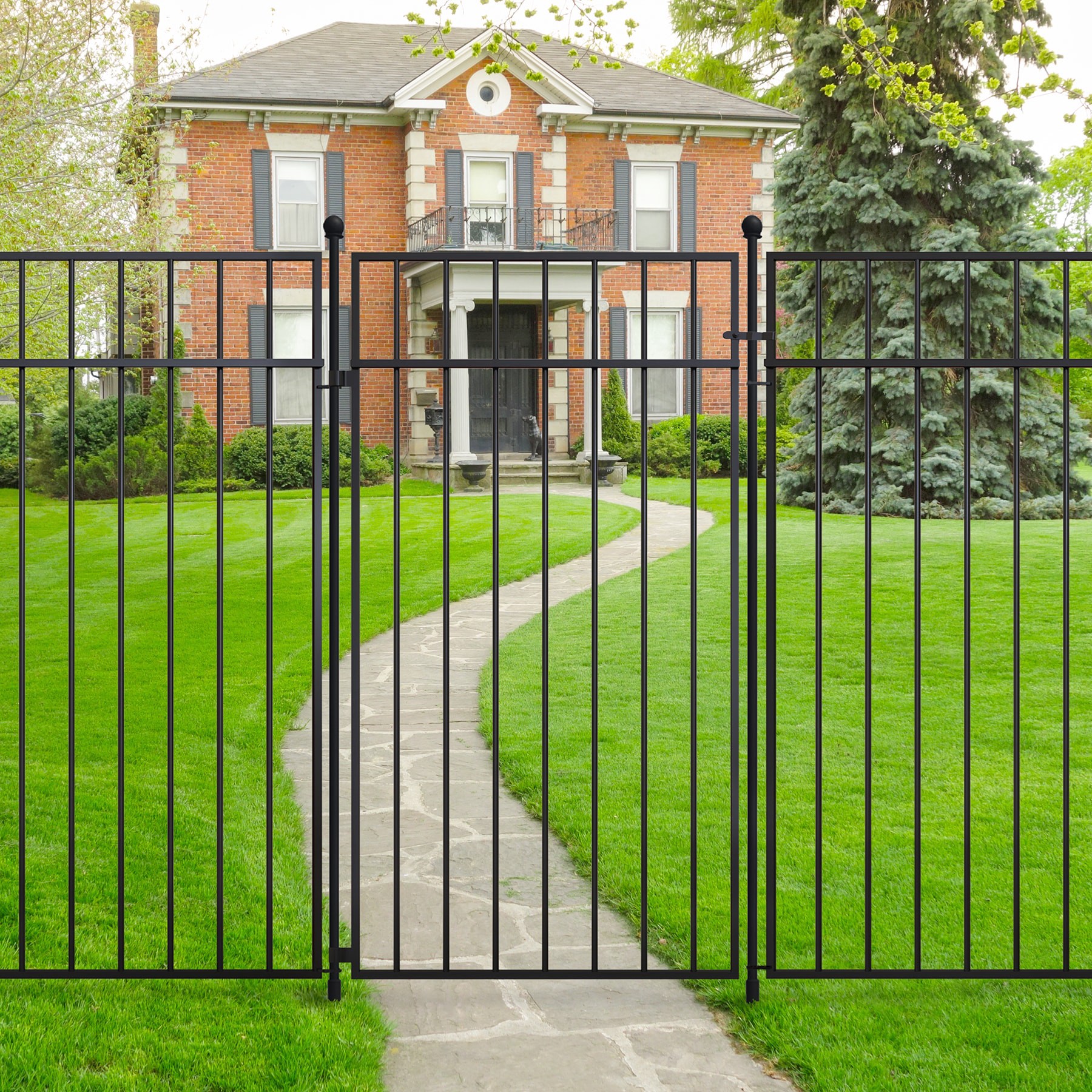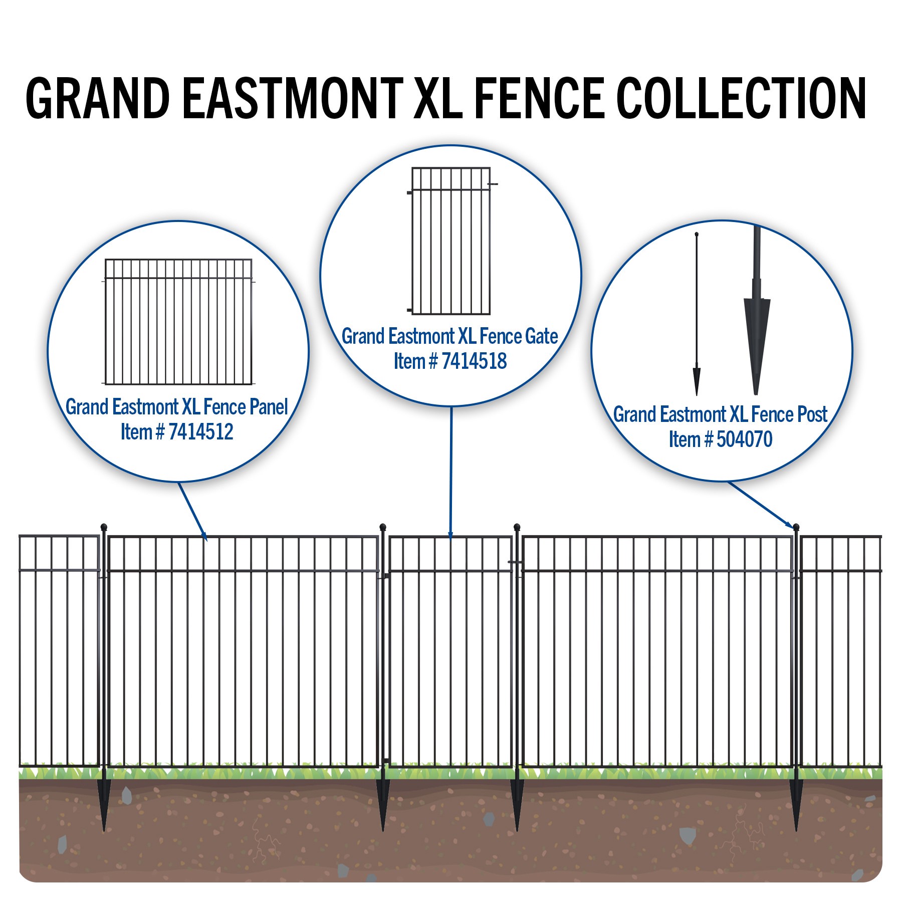 YARDLINK NEW -Grand Eastmont XL 4-ft H x 2-ft W Black Steel No Dig Yard Universal Spaced picket Fence gate