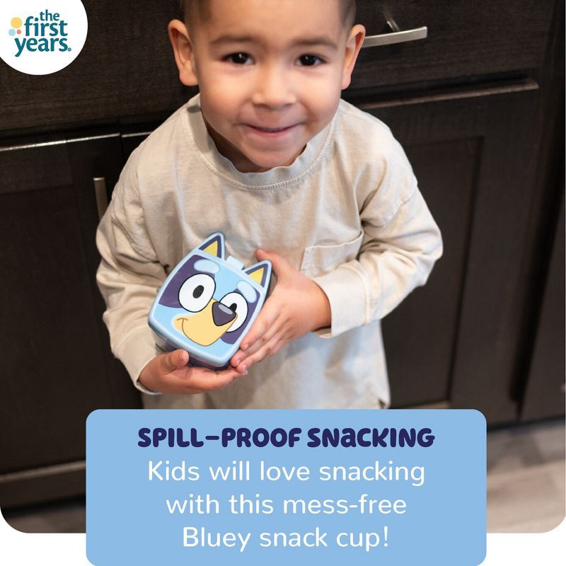 - Flip-top Cover: Featuring Bluey's cheerful face, the snack cup lid keeps toddler's snacks securely inside