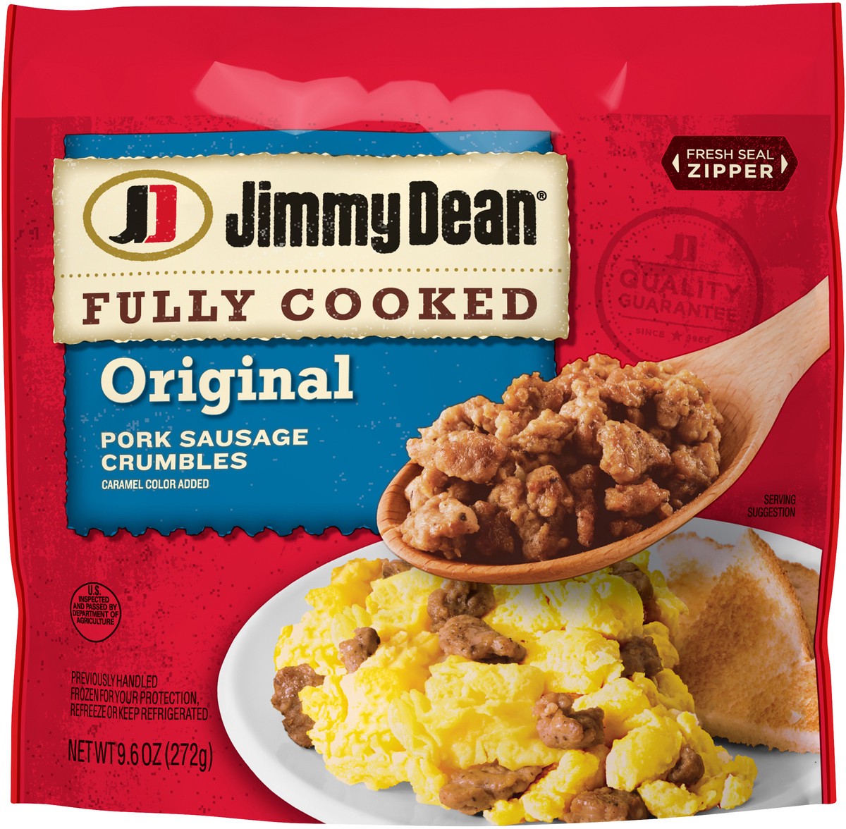 Jimmy Dean Fully Cooked Original Breakfast Sausage Crumbles are made with premium pork sausage that is seasoned to perfection with a signature blend of spices. Fully cooked and ready in minutes, theseā¦