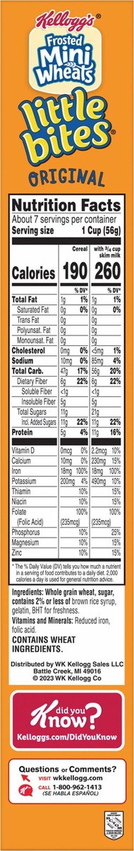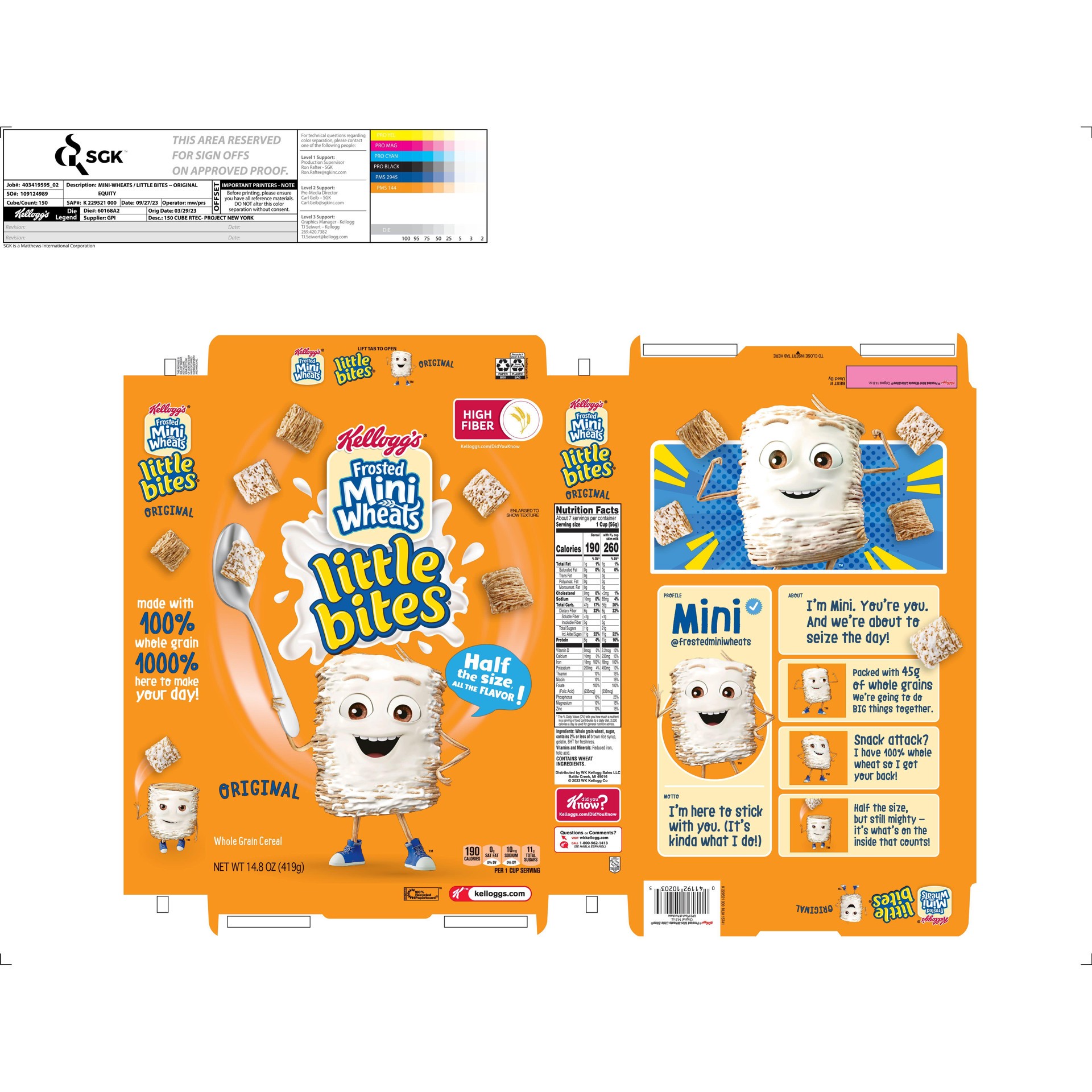 Greet the day with Frosted Mini-Wheats Little Bites, a wholesome, low-fat breakfast cereal, with pieces that are half the size of the original with all the flavor you love. These bite-sized biscuits p…