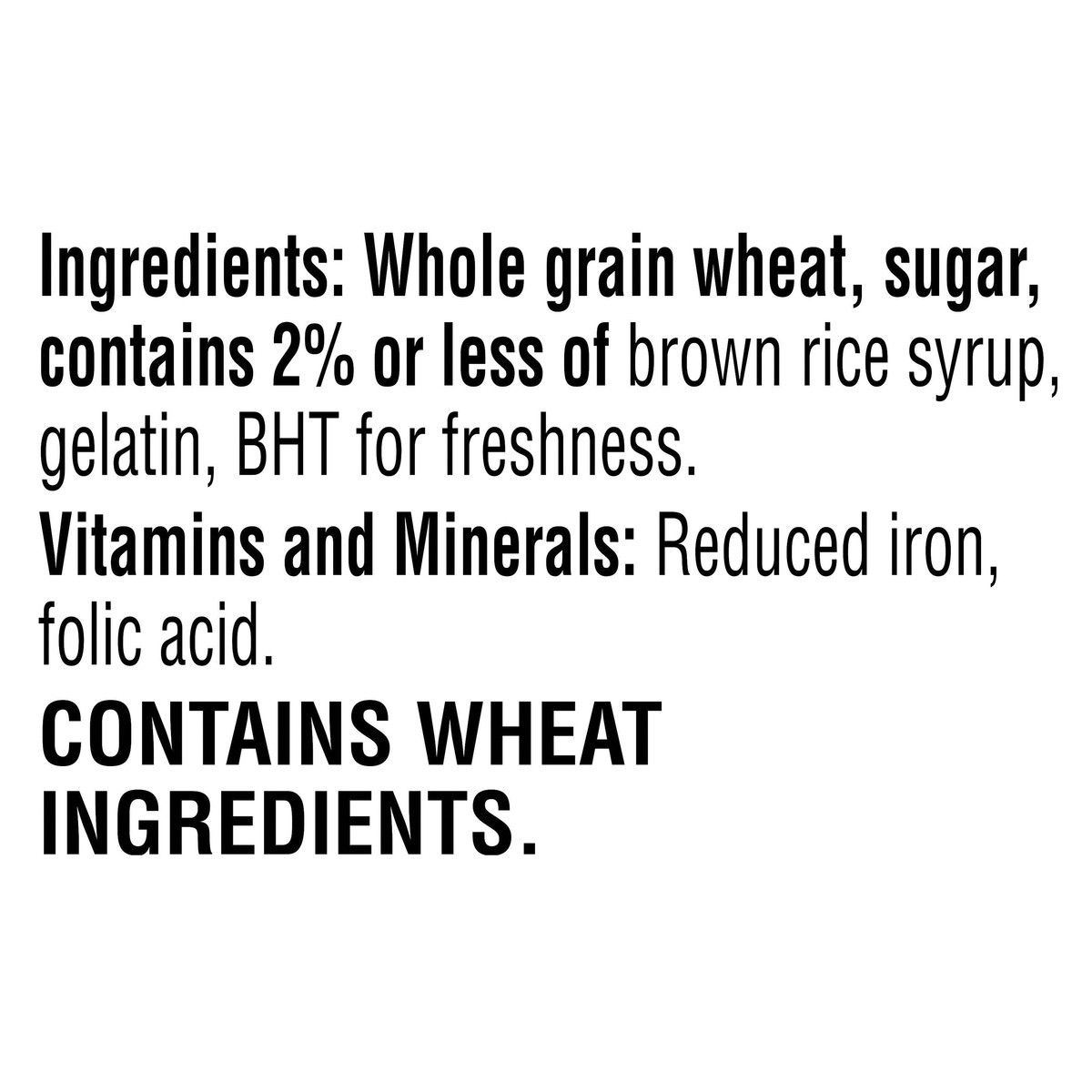 Whole Grain Wheat, Sugar, Contains 2% or Less of Brown Rice Syrup, Gelatin, BHT for Freshness, Vitamins and Minerals: Reduced Iron, Folic Acid.