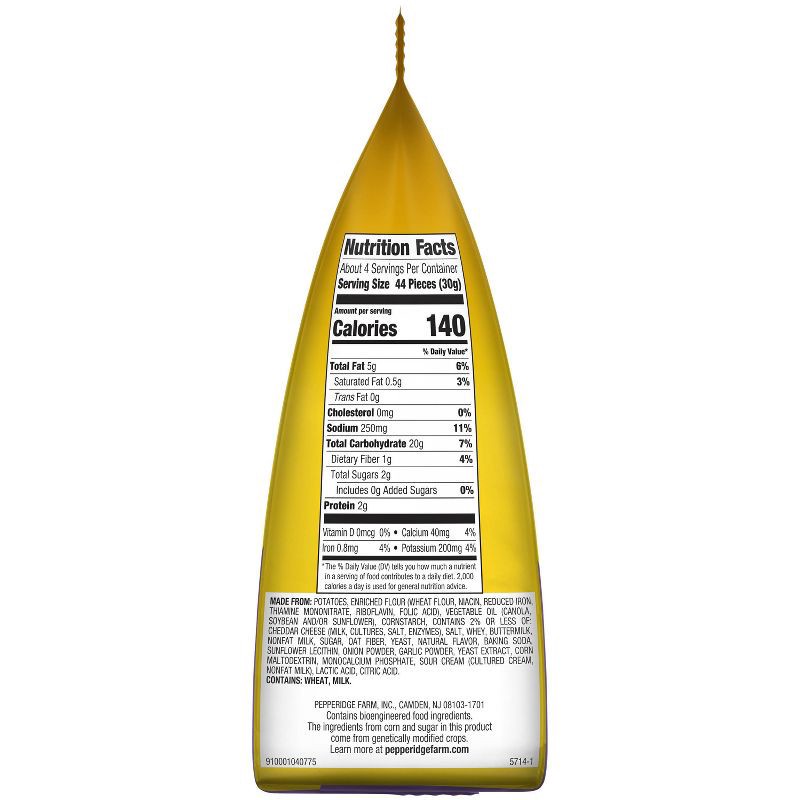 - Chip-like Goldfish cracker always baked with potato and wheat