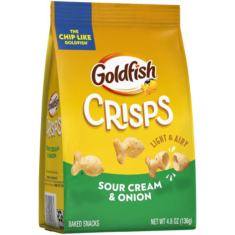- Includes one (1) 4.8-ounce bag of Goldfish® Crisps Sour Cream & Onion Baked Chip Crackers