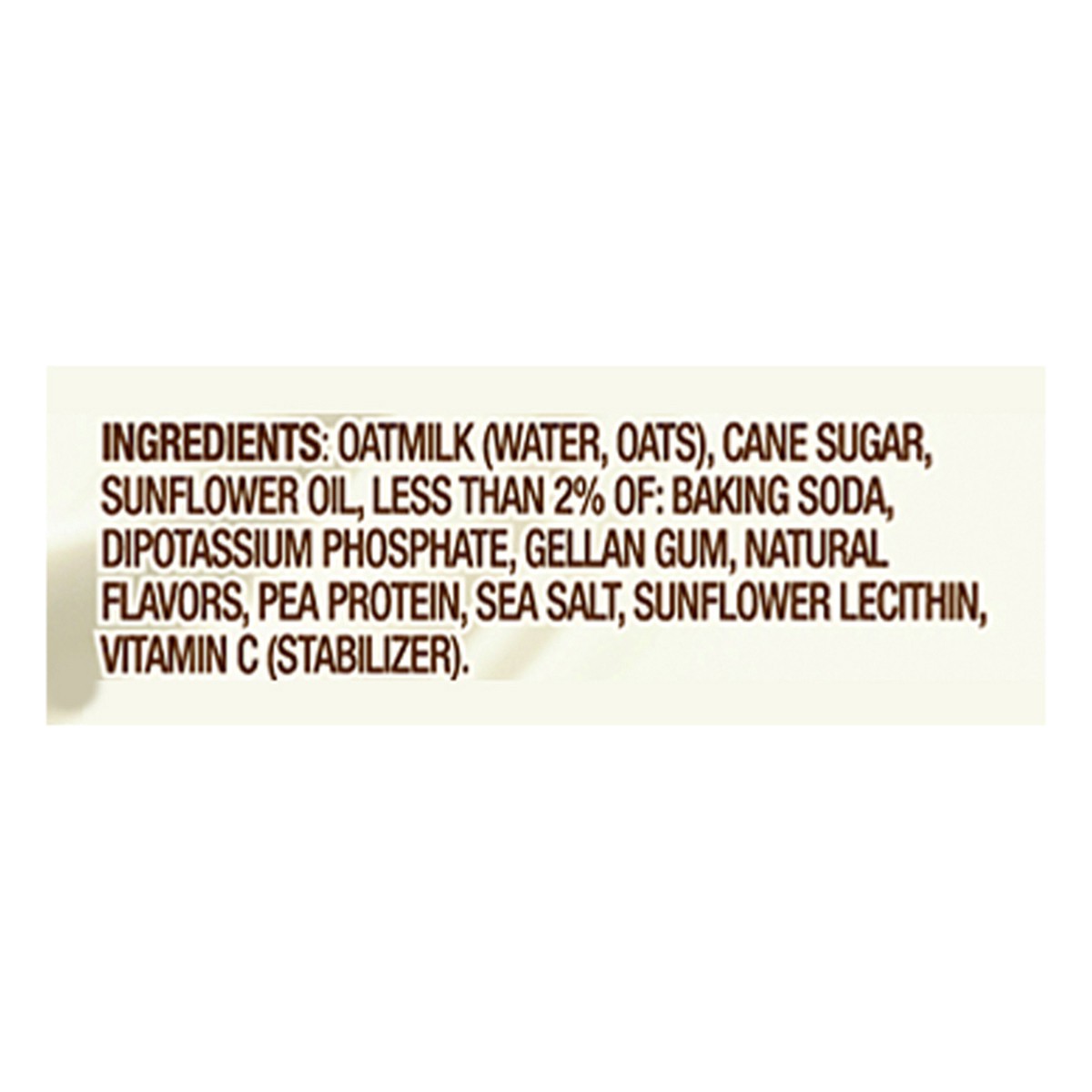 Oatmilk (Water, Oats), Cane Sugar, Sunflower Oil, Less than 2% of: Baking Soda, Dipotassium Phosphate, Gellan Gum, Natural Flavors, Pea Protein, Sea Salt, Sunflower Lecithin, Vitamin C (Stabilizer).