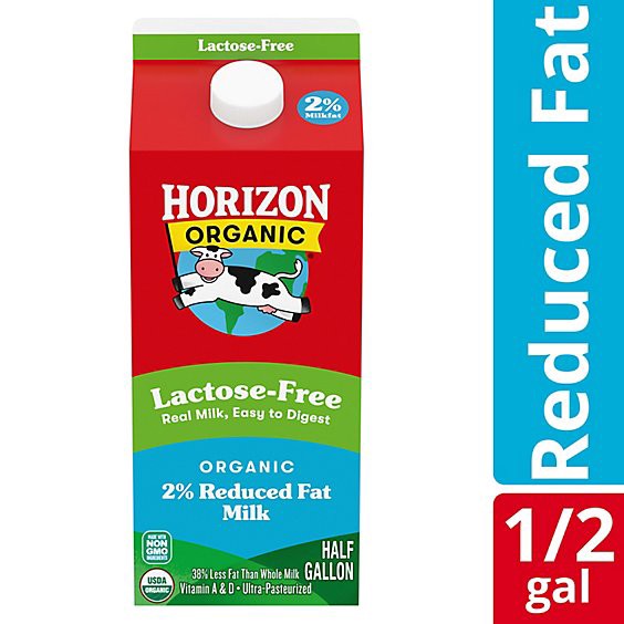 Horizon Organic 2% Reduced Fat Lactose Free Milk Carton - 0.5 Gallon