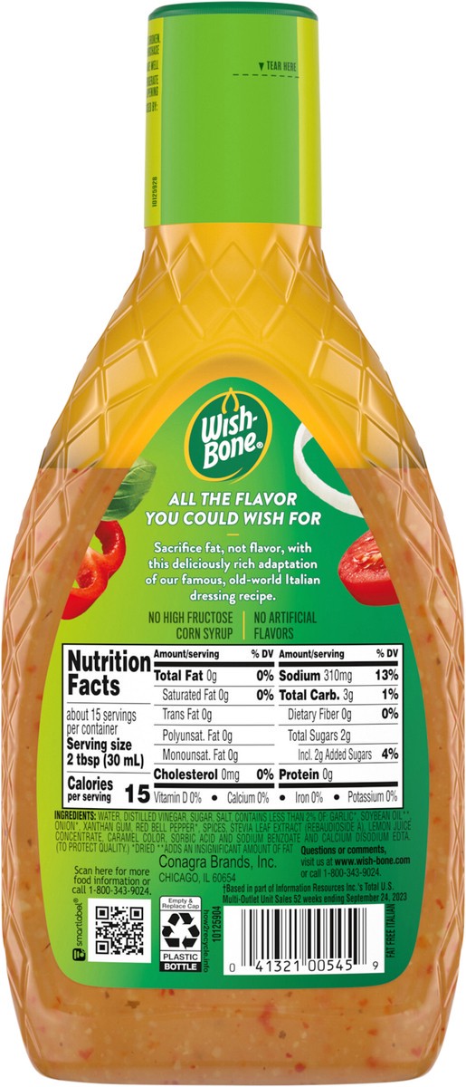 Wish-Bone Fat Free Italian Dressing adds rich flavor to all your favorite dishes. A deliciously rich adaptation of Wish-Bone's old-world Italian dressing adds a flourish of bold flavor without the fat…