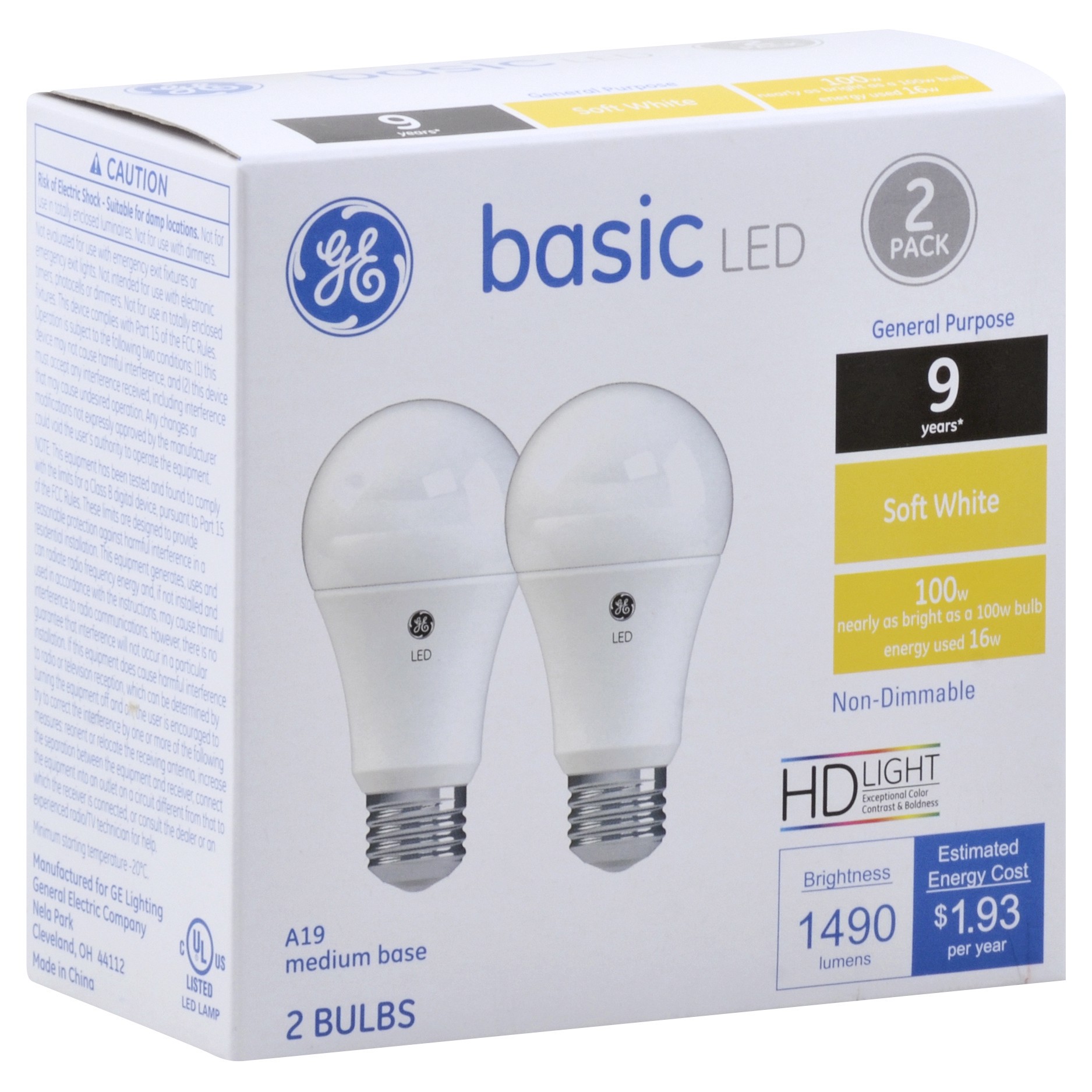 Brightness Quality: 1490 Lumens. Energy Info: 1.93 based on 3 hrs/day, 11 cents per kWh. Cost depends on rates and use. 16 Watts. Package Info: 2-Pack 2 Bulb Info: LED Medium. Bulb Life: 9.1 Years bas…
