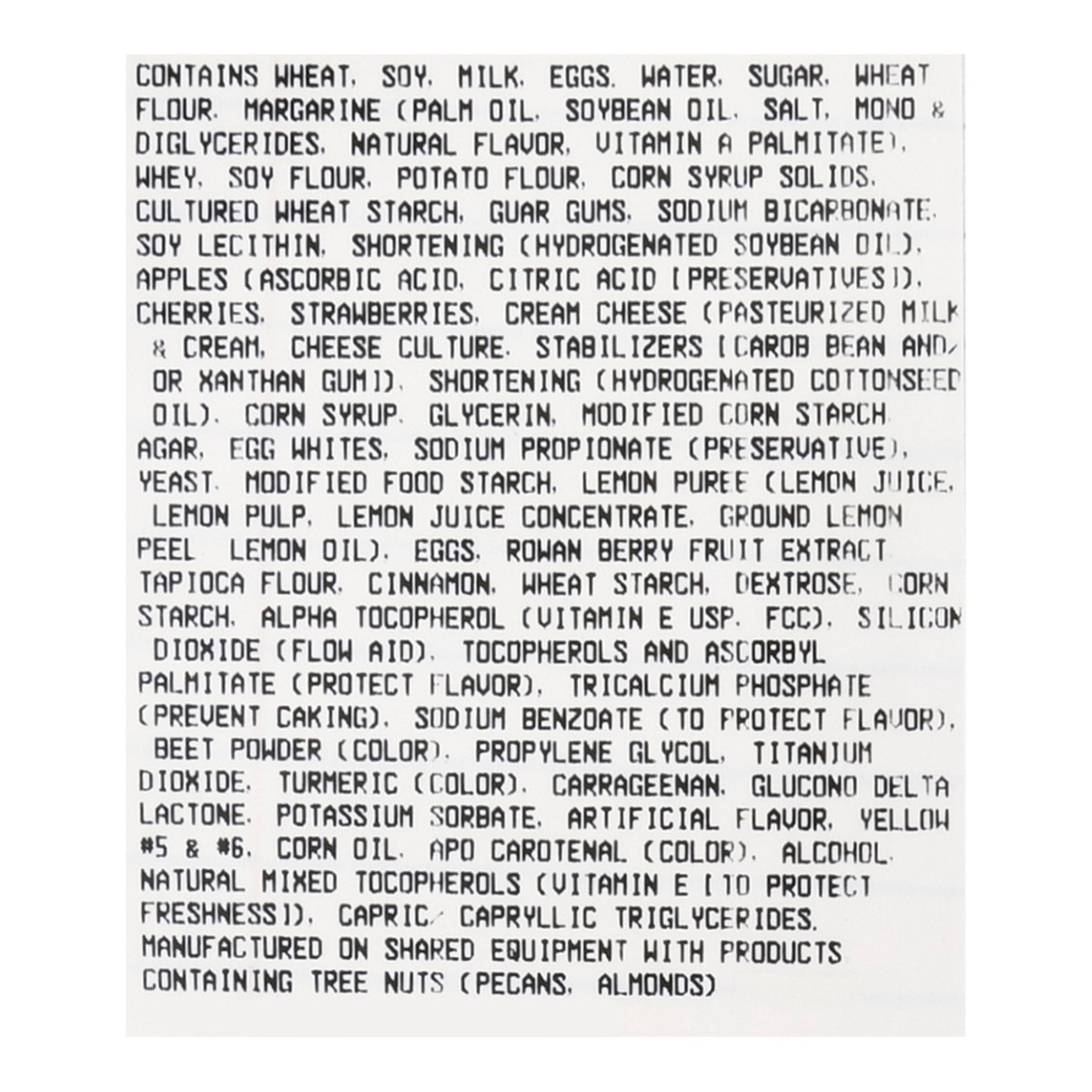 Contains wheat, soy, milk, eggs.