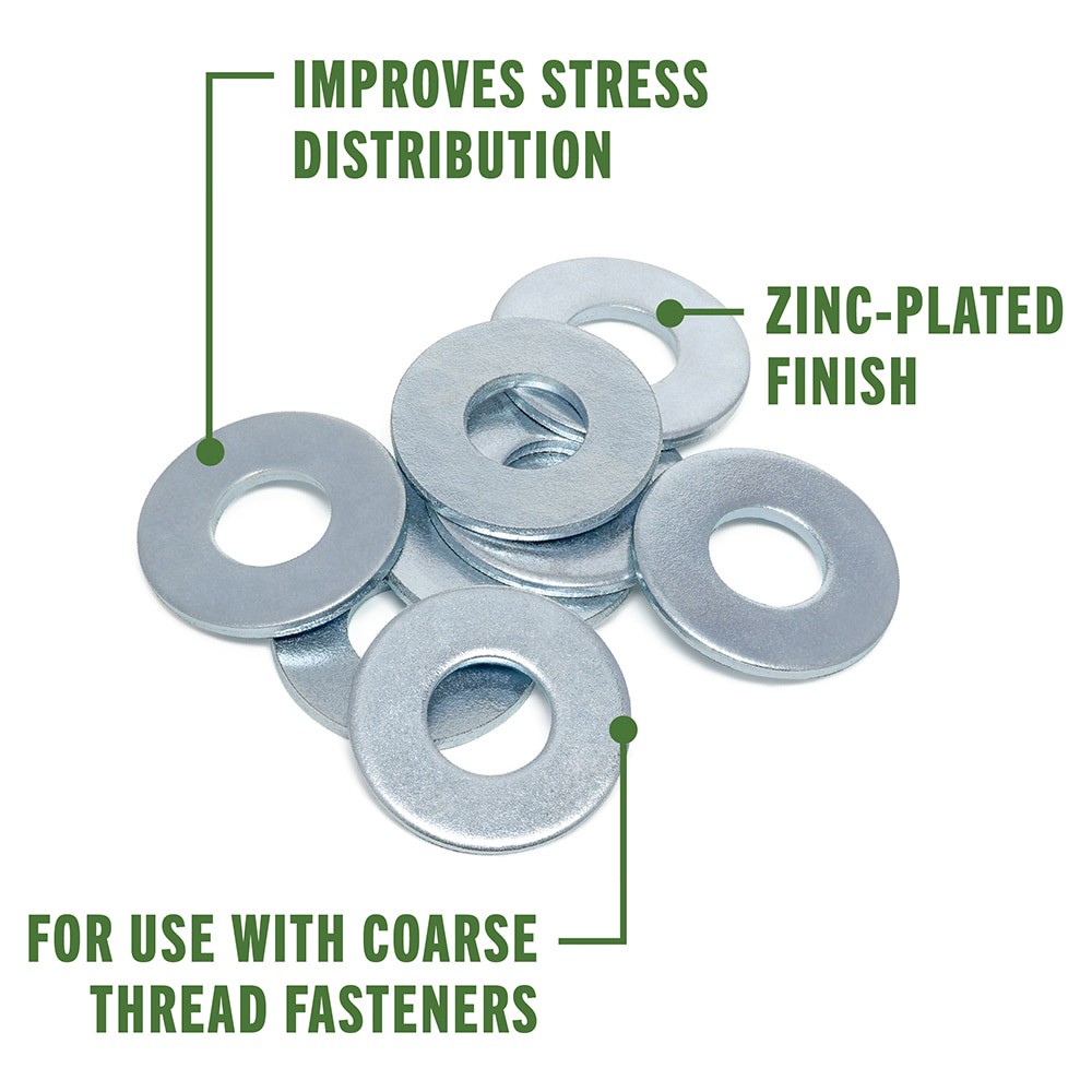 Outer diameter measurement: 3/4-in. Thickness measurement: 1/16-in. The zinc coating provides a corrosion resistant finish. Use with a 1/4-in bolt or screw to increase the fastening pressure the bolt …
