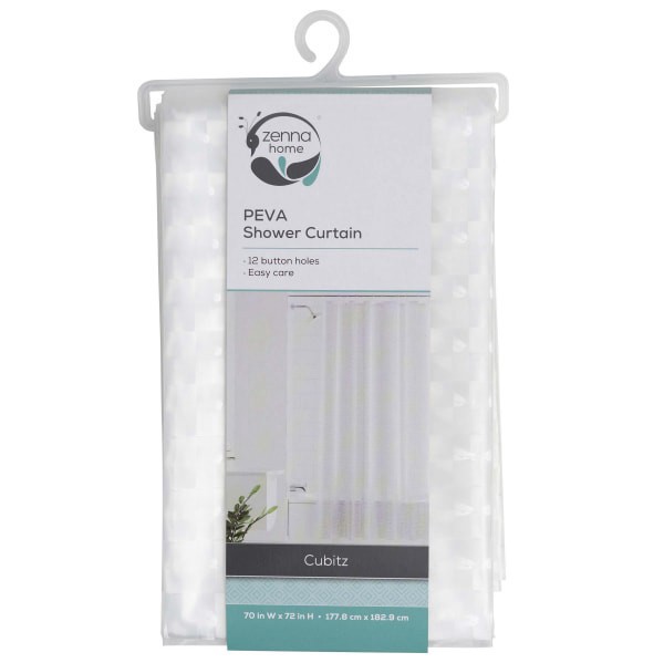 With a richly textured modern glass block pattern, the Zenna Home Cubitz PEVA Shower Curtain adds crisp contemporary styling into any bath space. Button holes at the top make it easy to hang on any sh…