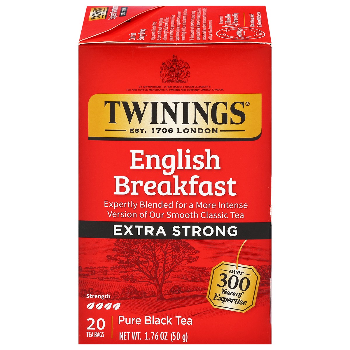 100% pure black tea. Awaken your senses with a more intense version of this classic tea. Tea Profile: Strength: 4; Notes: Smooth, rich, full-bodied; Origins: Africa, India and Sri Lanka. The Twinings …
