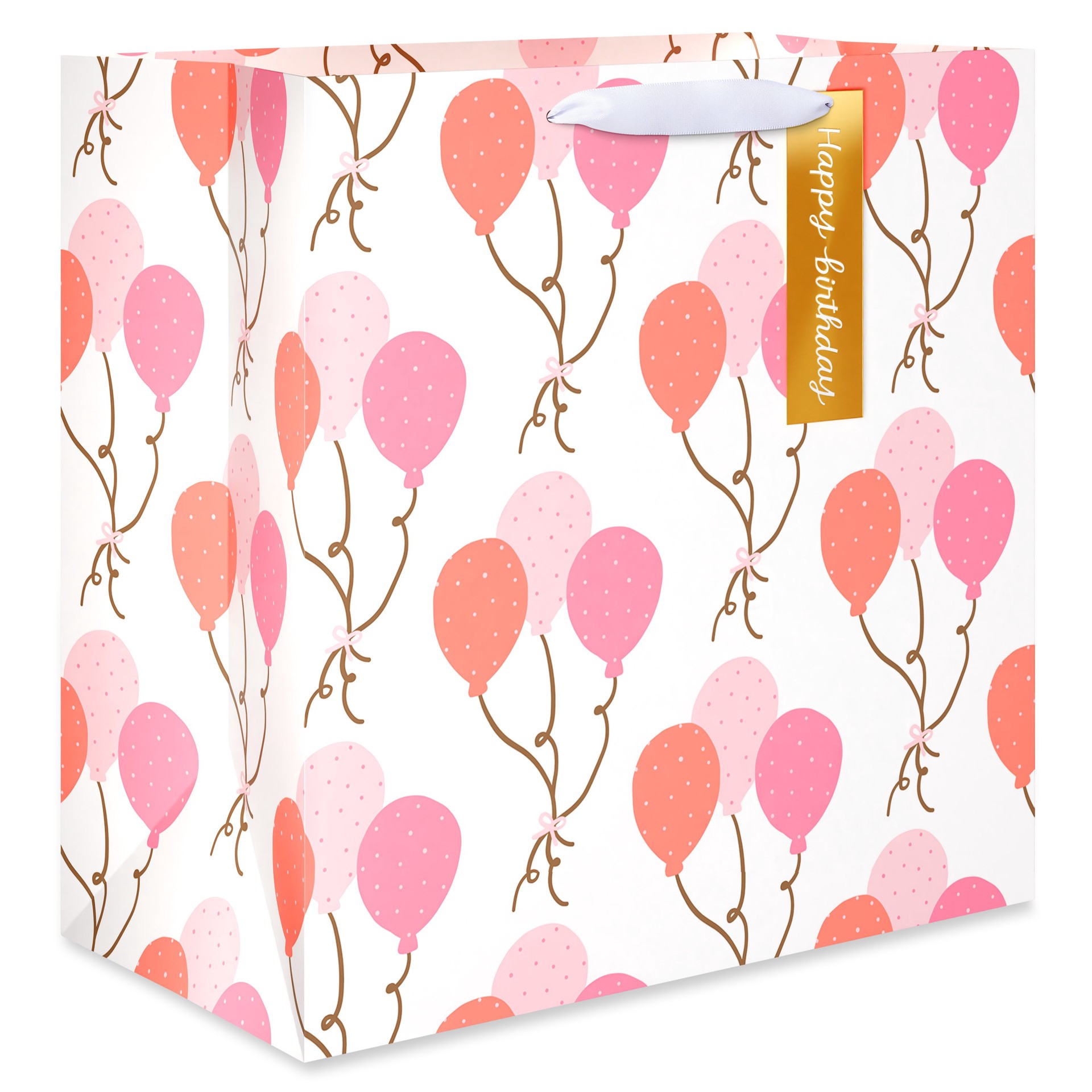American Greetings Pink Balloons Jumbo White Birthday Square Bag with Hang Tag