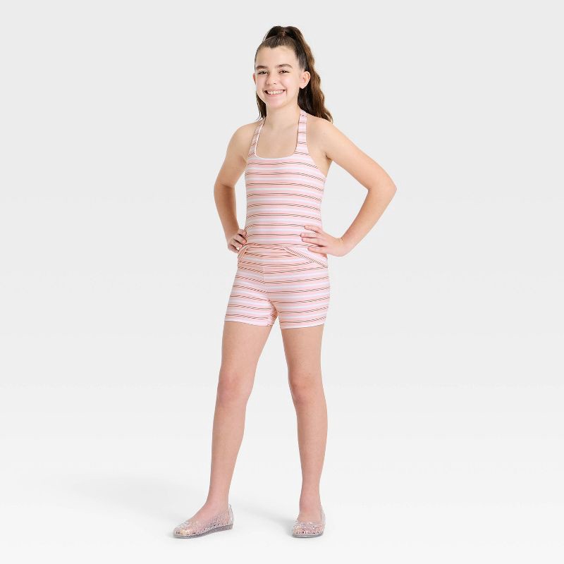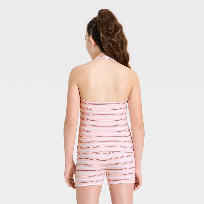 Girls' Super-Soft Striped Halter Tank Top - art class™ Pink/White/Brown L
