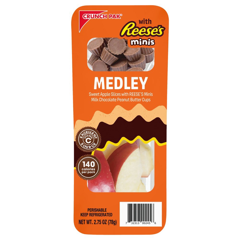 Big flavor for big appetites! Crunch Pak® Medley With Reese's Minis and Apples offers a quick, on-the-go snack. Sweet apples slices and Reese's Mini's peanut butter cups are the perfect snack for kids…