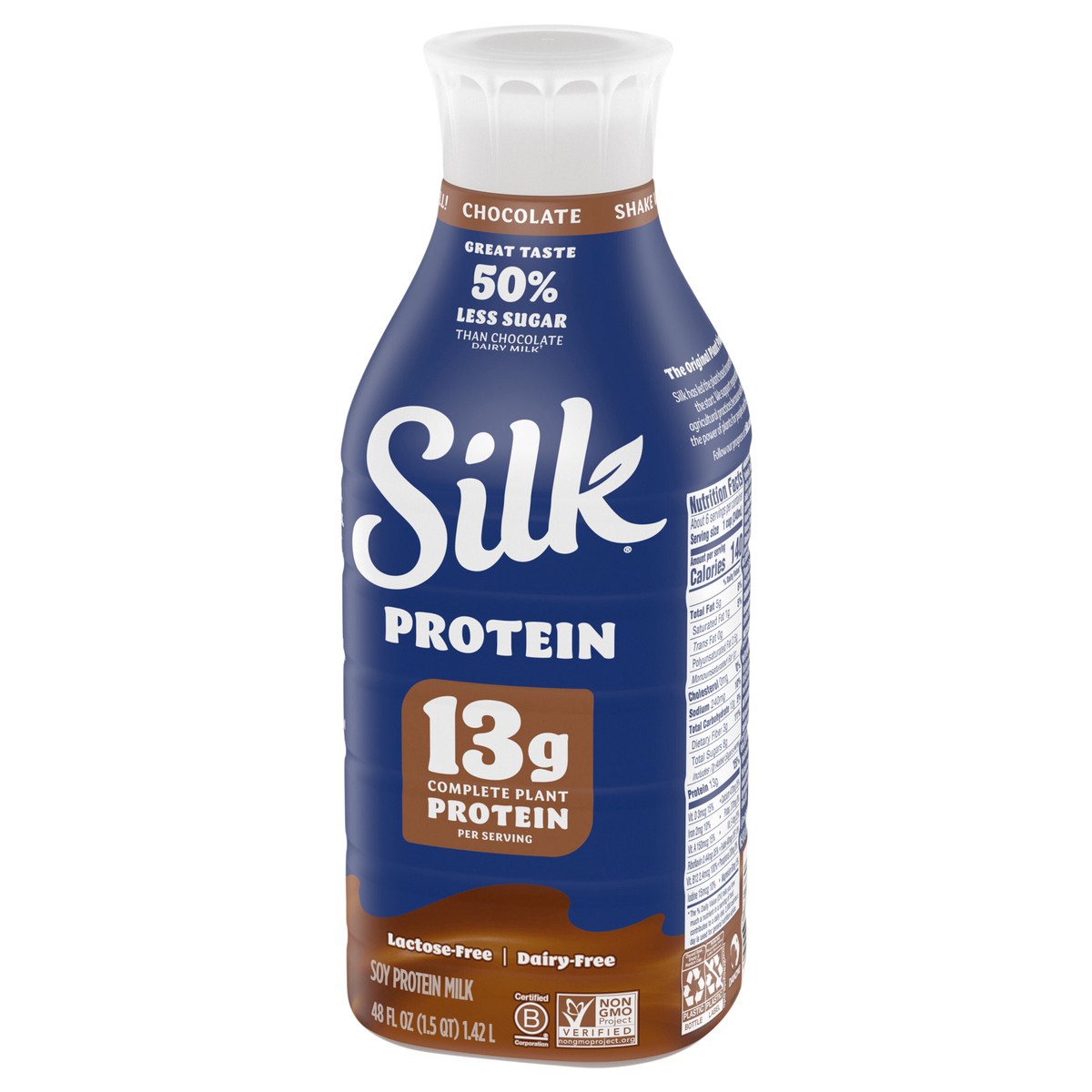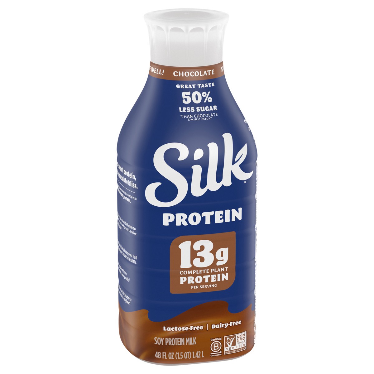 Silk Protein Chocolate Complete Plant Protein Milk is high protein plant based milk with 13g complete plant protein per serving, 50% more than regular dairy milk,* to help keep you full and help suppo…