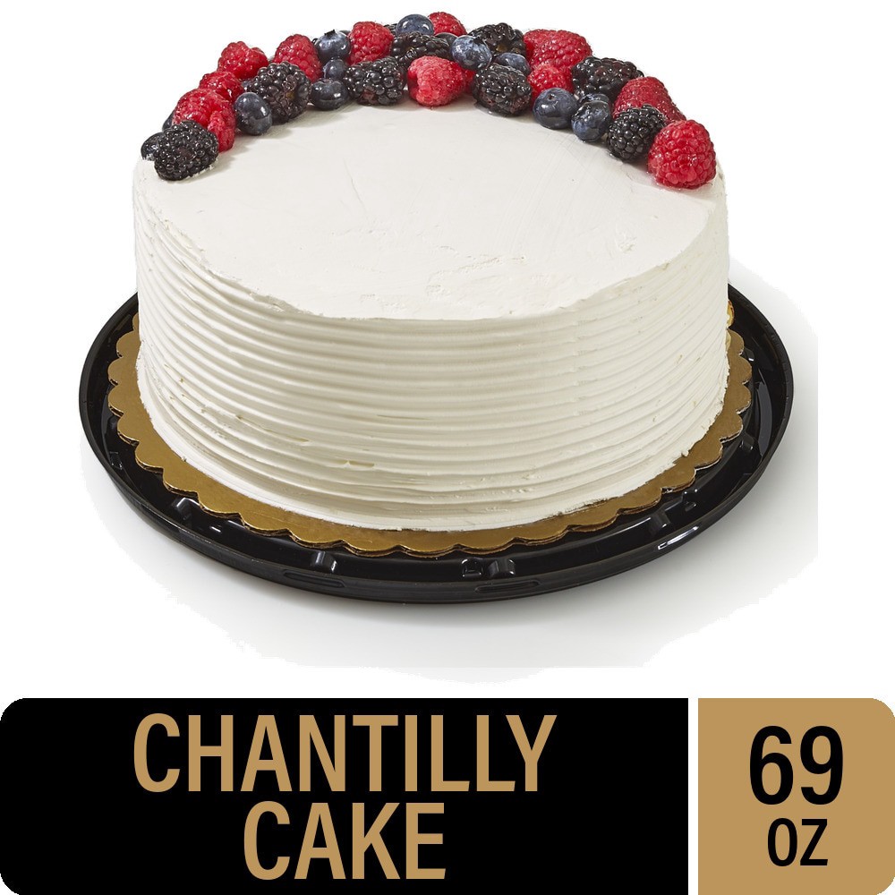 Kroger® Chantilly Cake is an unforgettable sensation. Layers of fluffy vanilla cake, fresh berries, and creamy frosting satisfy every sweet tooth. It's perfect for elevating parties and gatherings.Kro…