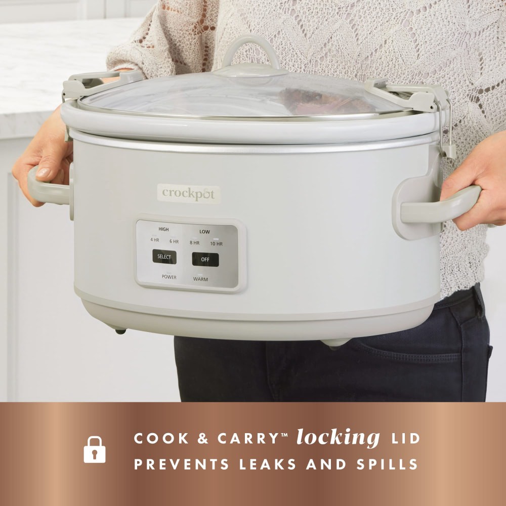 The Crockpot Design Series 7 qt Cook Carry Slow Cooker has a travelproof locking lid that seals tightly to prevent leaks and spills. Features a streamlined design and boasts an AutoWarm setting to ke…