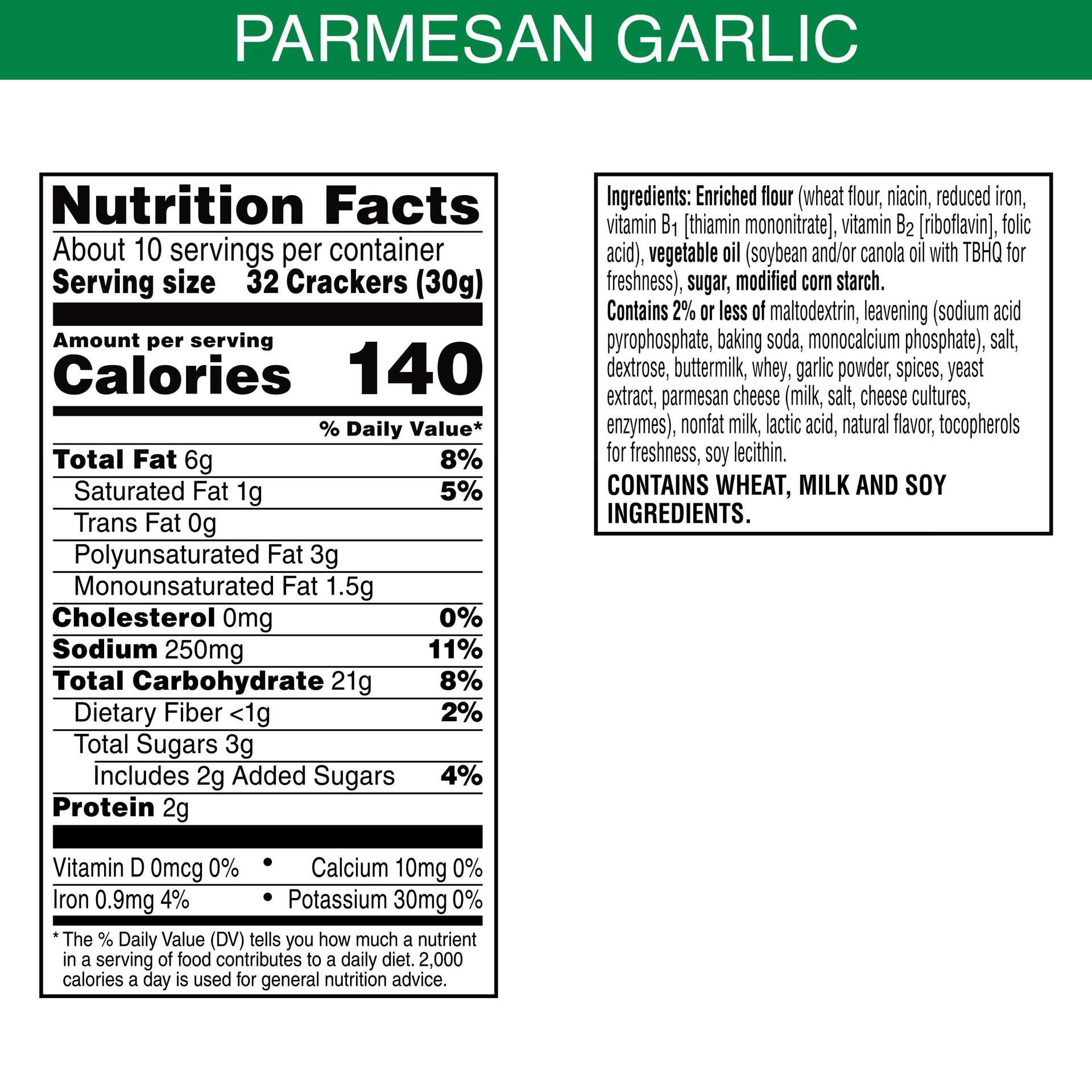 - Crisp mini crackers with buttery parmesan and garlic taste perfect for eating straight out of the box or paired with your favorite dips