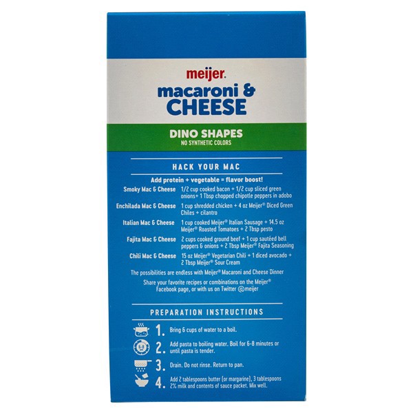 Who knew macaroni and cheese for dinner could get even more exciting? Meijer Dino Shaped Macaroni and Cheese is the delicious, gooey meal your kids have been dreaming about -- and an easy way to get 9…