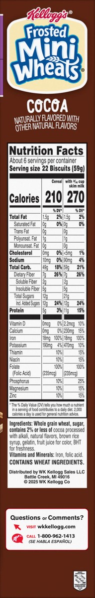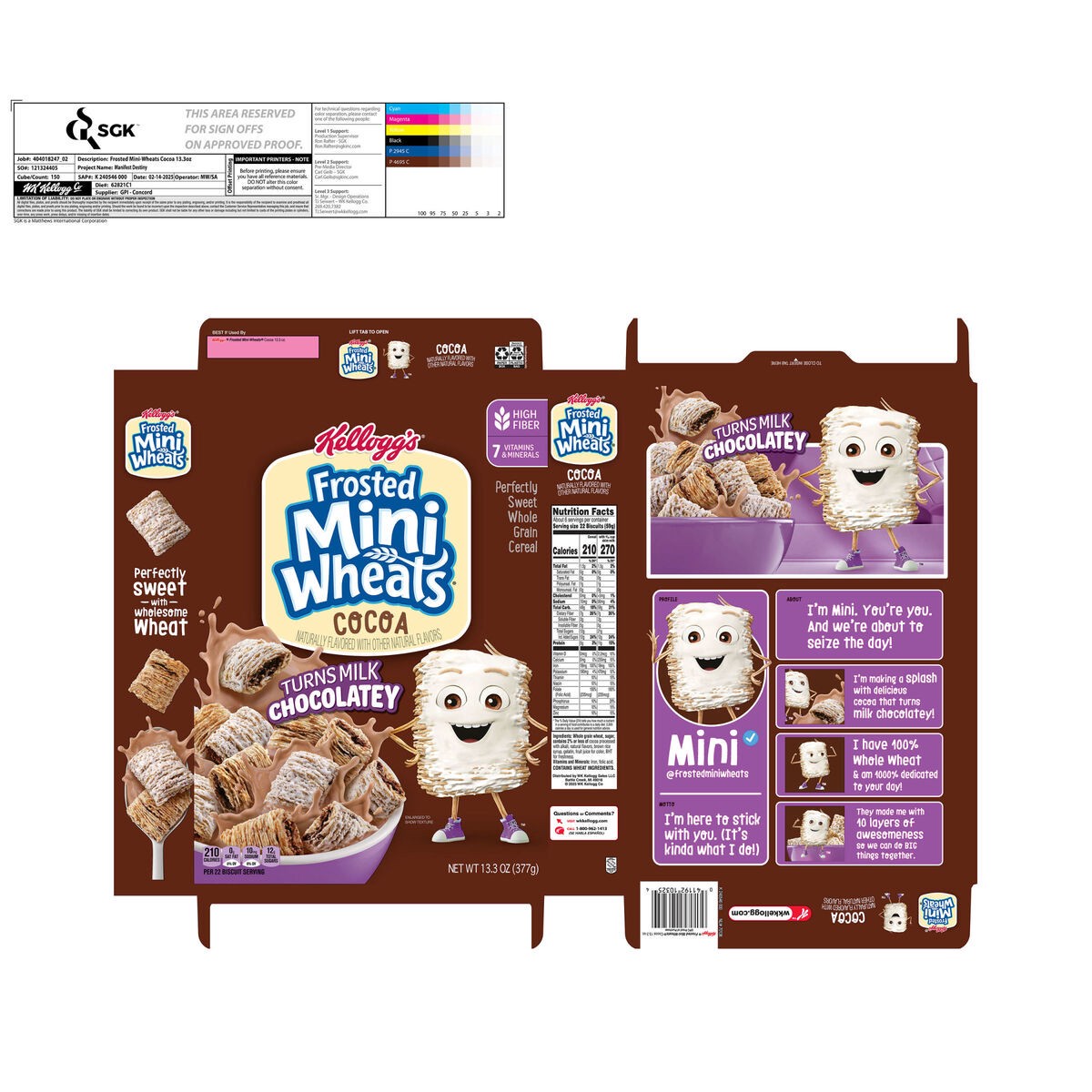 - 13.3oz box of delicious Kellogg's Frosted Mini-Wheats Cocoa breakfast cereal; Packaged for freshness and great taste