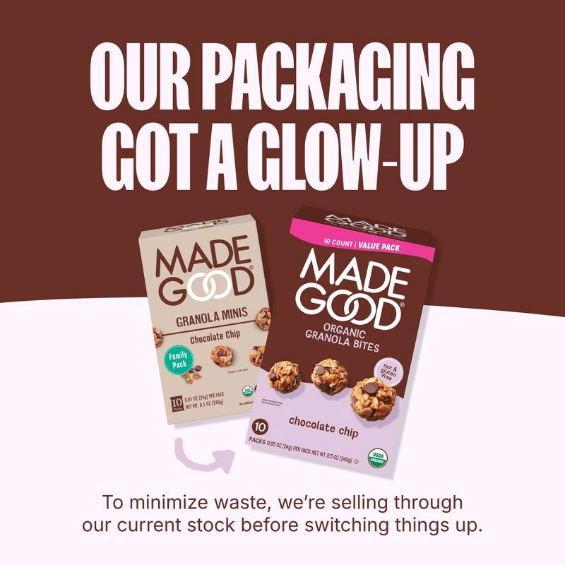 Keep your pantry full of the good stuff. MadeGood® Chocolate Chip Granola Bites take all that is loved by the classic, like dark chocolate chips and sweet crispy oats. They are , gluten-free, free fro…