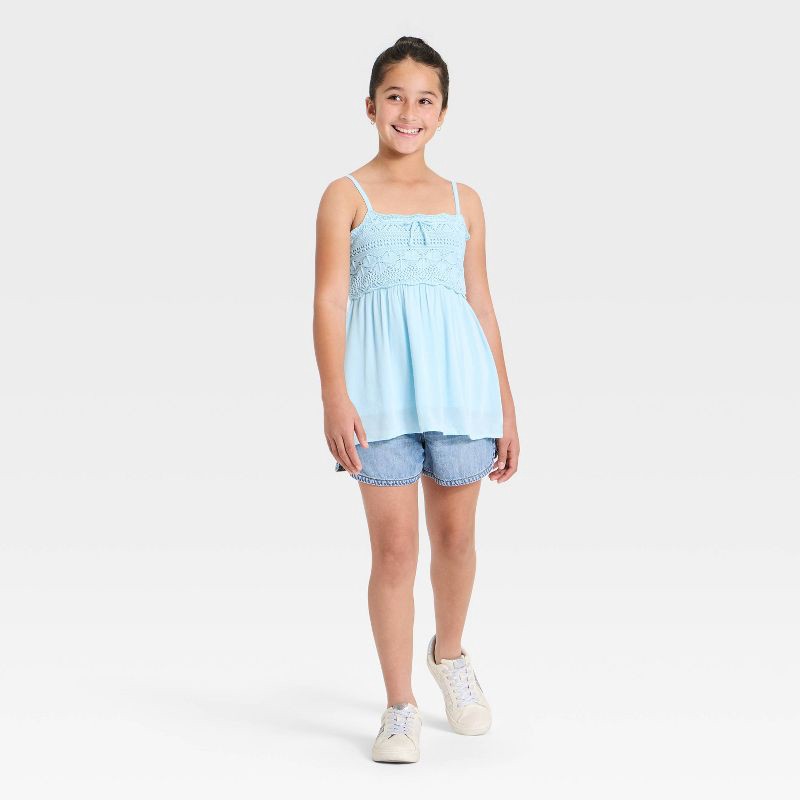 Girls' Babydoll Sweater Trim Tank Top - art class™ Blue S