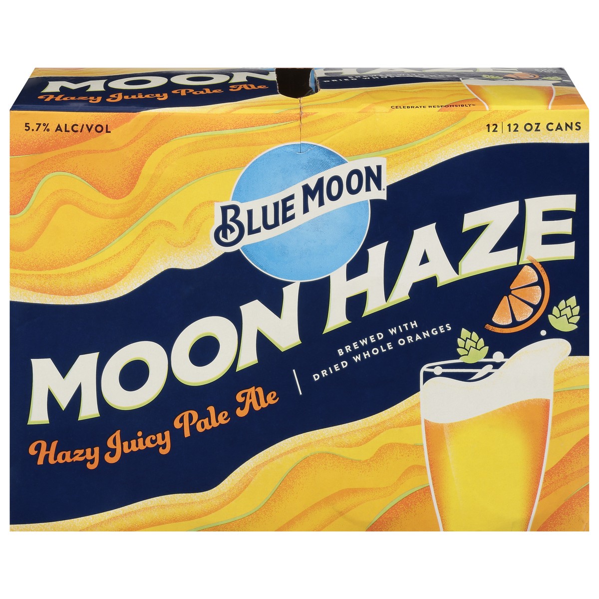 Introducing Moon Haze crafted by Blue Moon Brewing Company. Blue Moon Moon Haze is an easy drinking hazy juicy pale ale brewed with dried whole oranges to infuse the flavor into the beer, creating a d…
