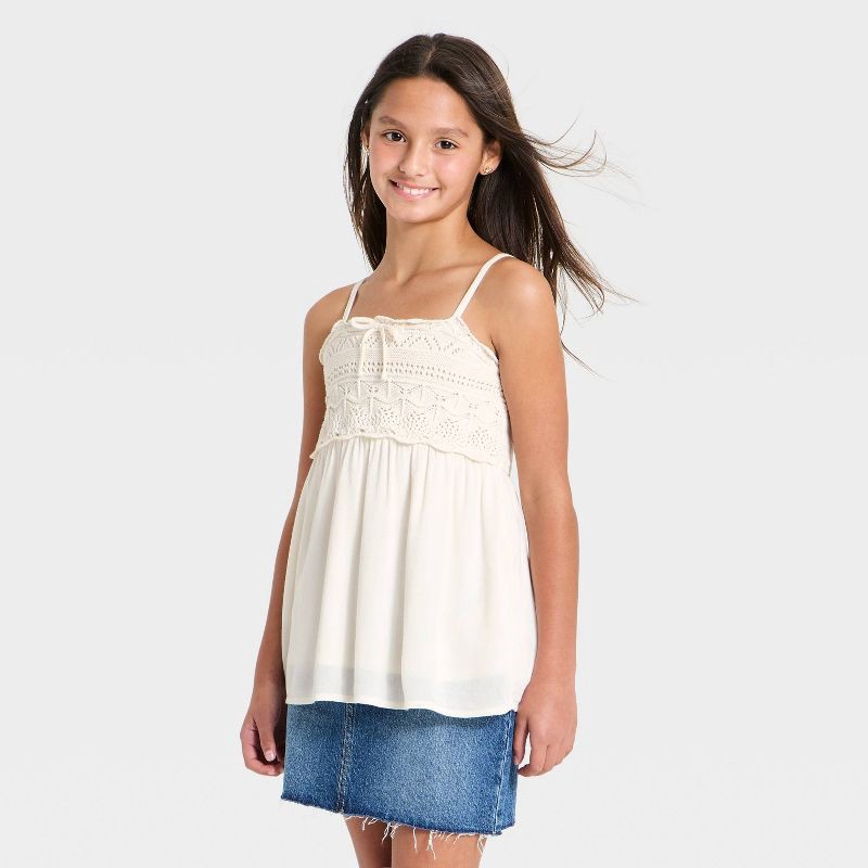 Girls' Babydoll Sweater Trim Tank Top - art class™ Off-White M