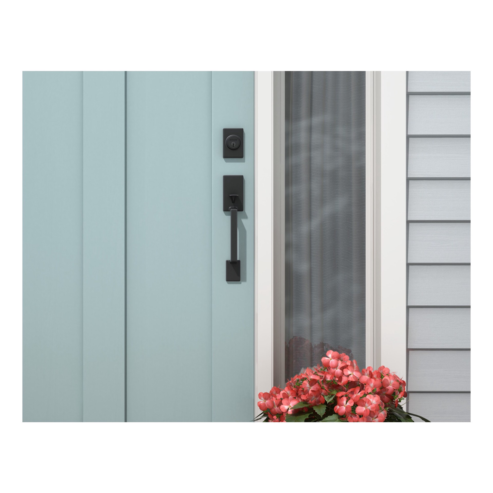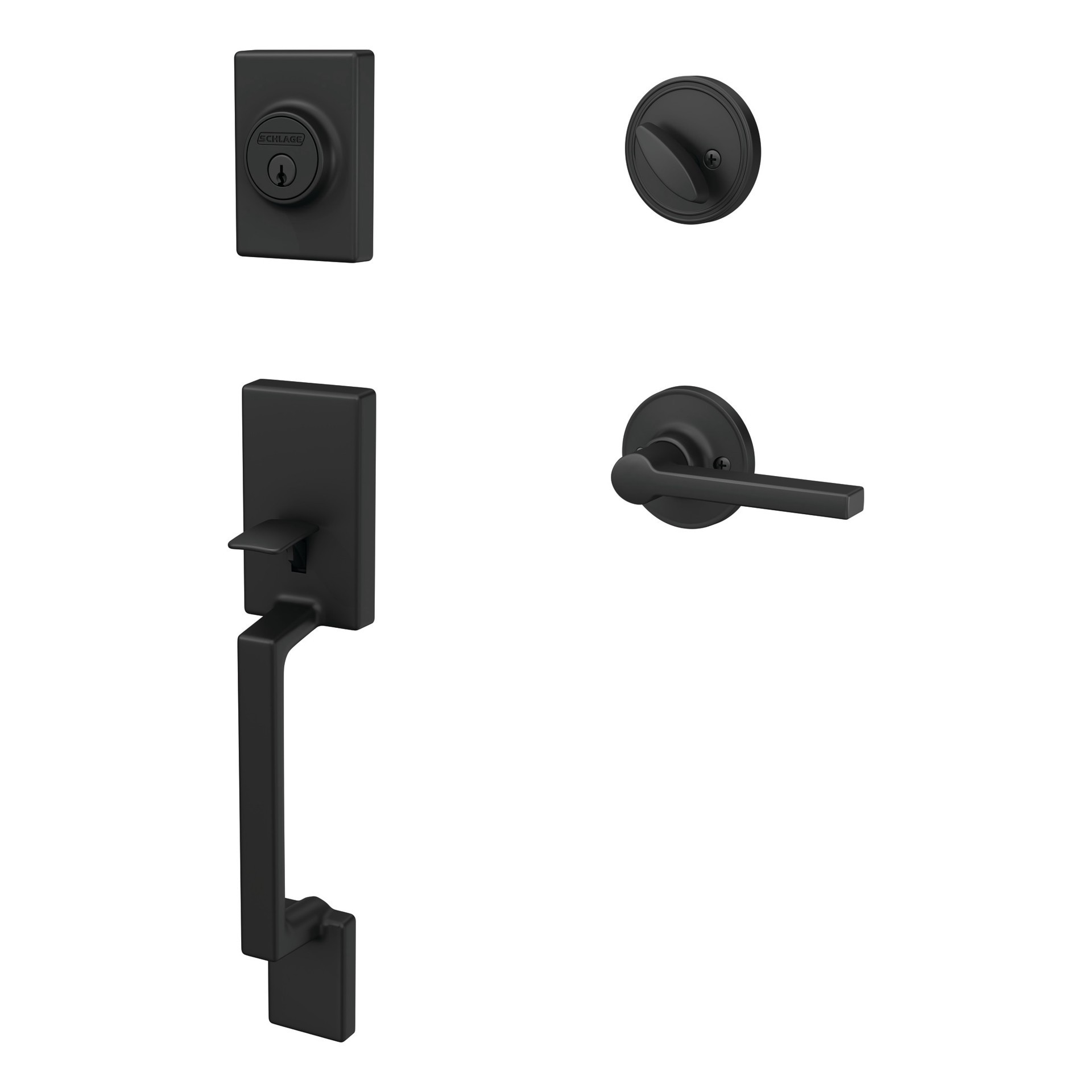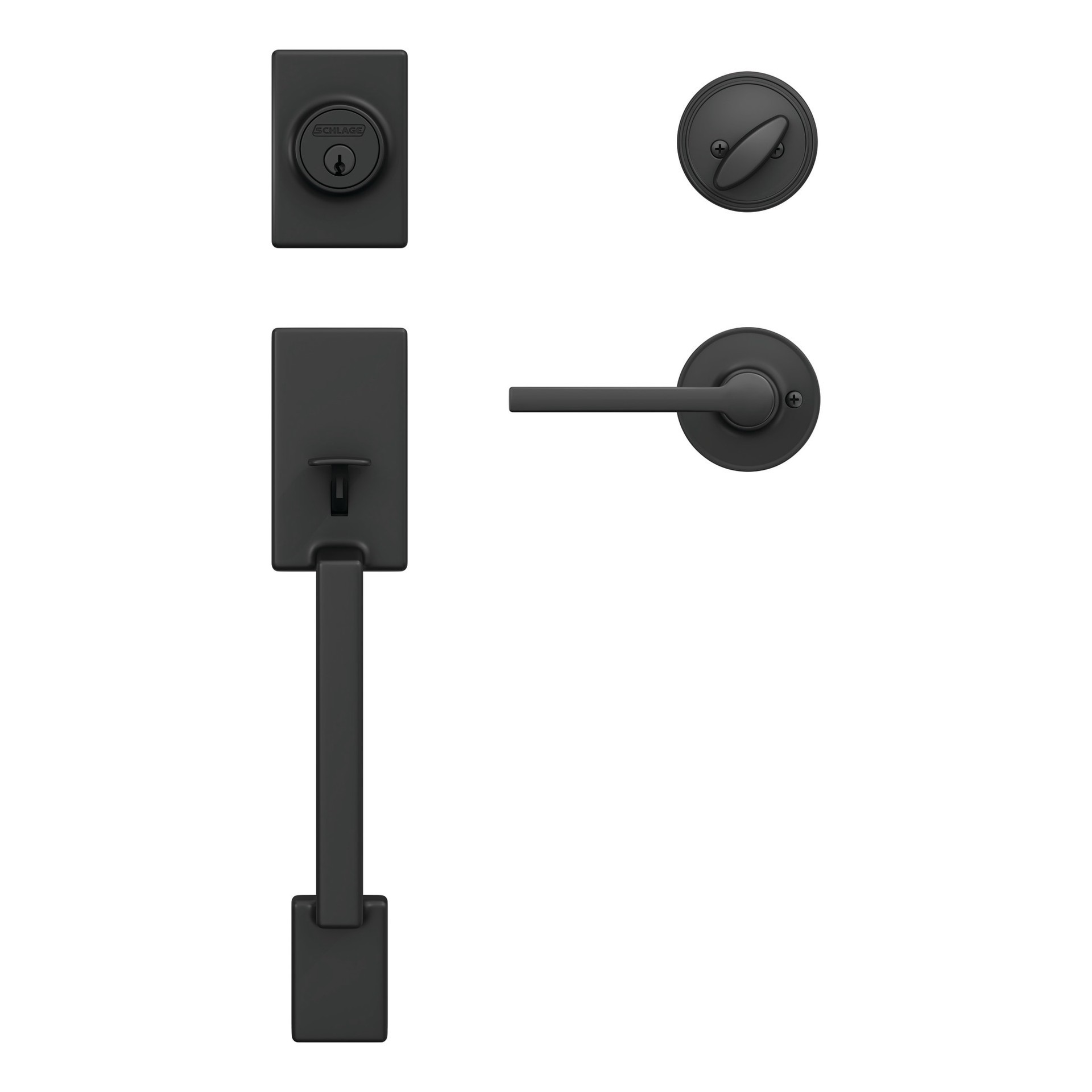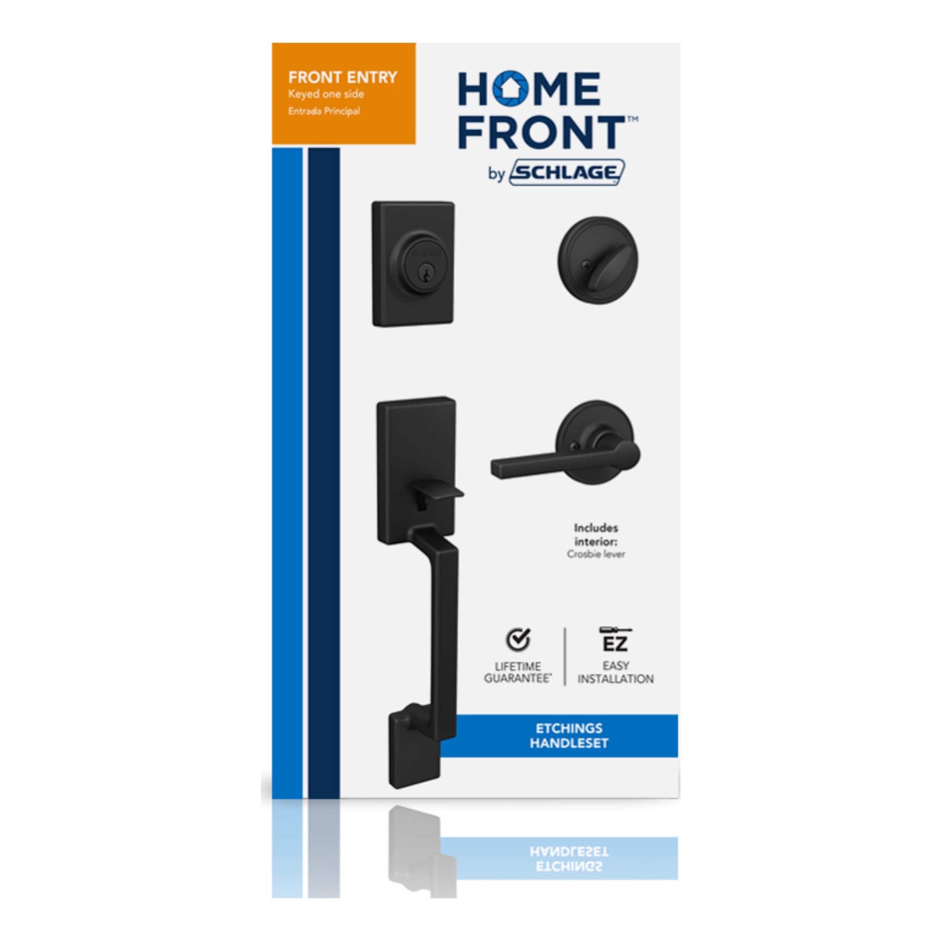 Home Front by Schlage Etchings-Crosbie Matte Black Exterior Single-Cylinder Deadbolt and Keyed Entry Door Handleset
