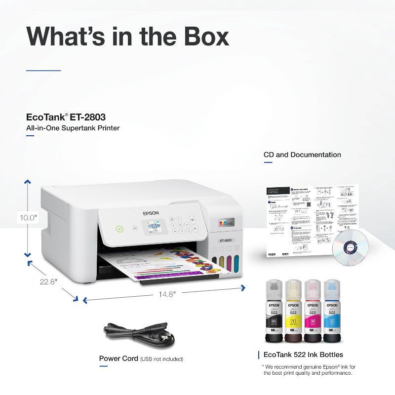 Your family needs a printer that's fast, affordable, and easy to use. That's why we developed the EcoTank ET-2803 – an innovative cartridge-free solution that uses high-capacity, easily refillable ink…