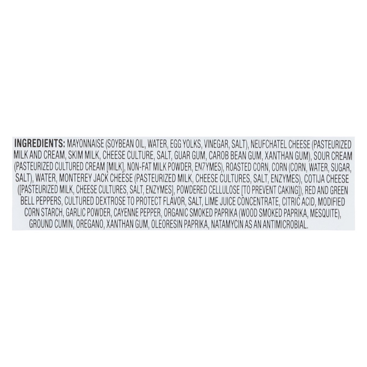 A flavorful combination of roasted corn, Monterey Jack, Cotija cheese, cumin and lime. A slight grilled smoky flavor makes this an instant favorite. Great as a snack or tailgate party appetizer on gam…