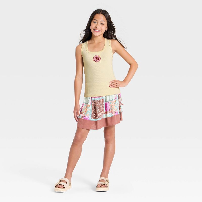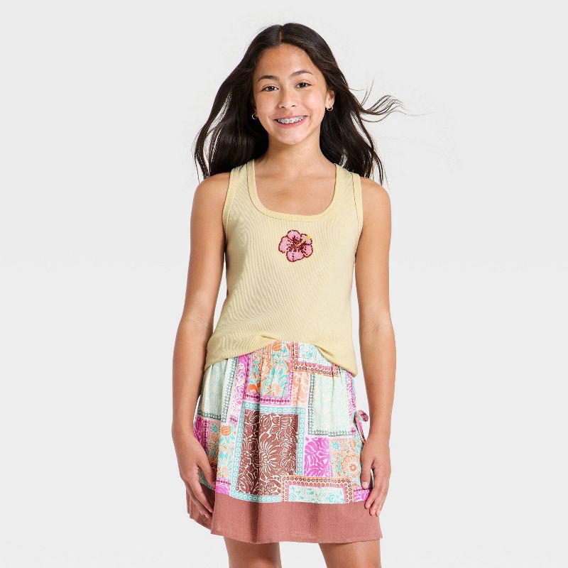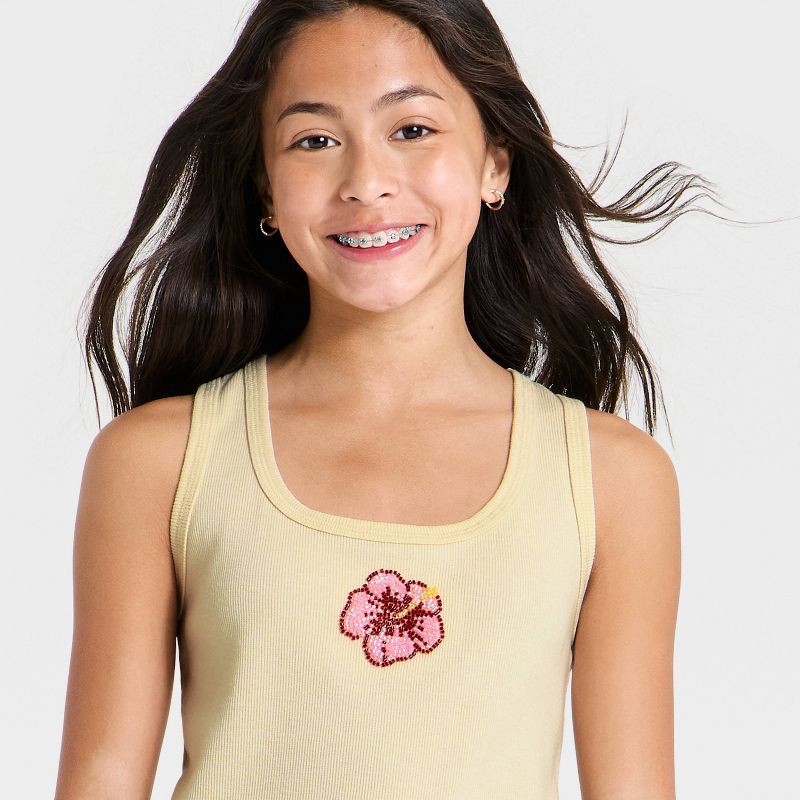 Girls' Flower Beaded Ribbed Tank Top - art class™ Cream XL