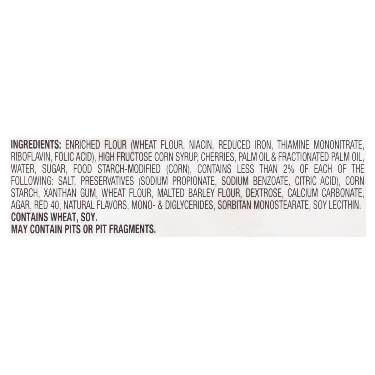 Enriched Flour (Wheat Flour, Niacin, Reduced Iron, Thiamine Mononitrate, Riboflavin, Folic Acid), High Fructose Corn Syrup, Cherries, Palm Oil & Fractionated Palm Oil, Water, Sugar, Food Starch-Modifi…