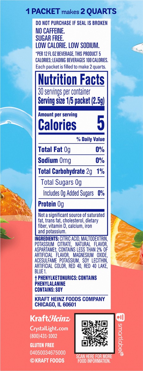 Citric Acid, Maltodextrin, Potassium Citrate, Natural Flavor, Aspartame (Phenylketonurics: Contains Phenylalanine), Contains Less than 2% of Artificial Flavor, Magnesium Oxide, Acesulfame Potassium, S…