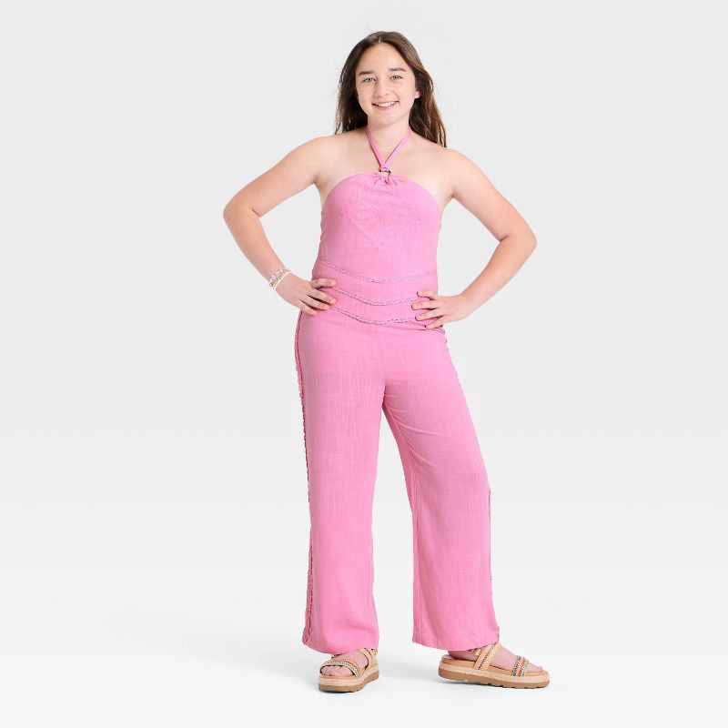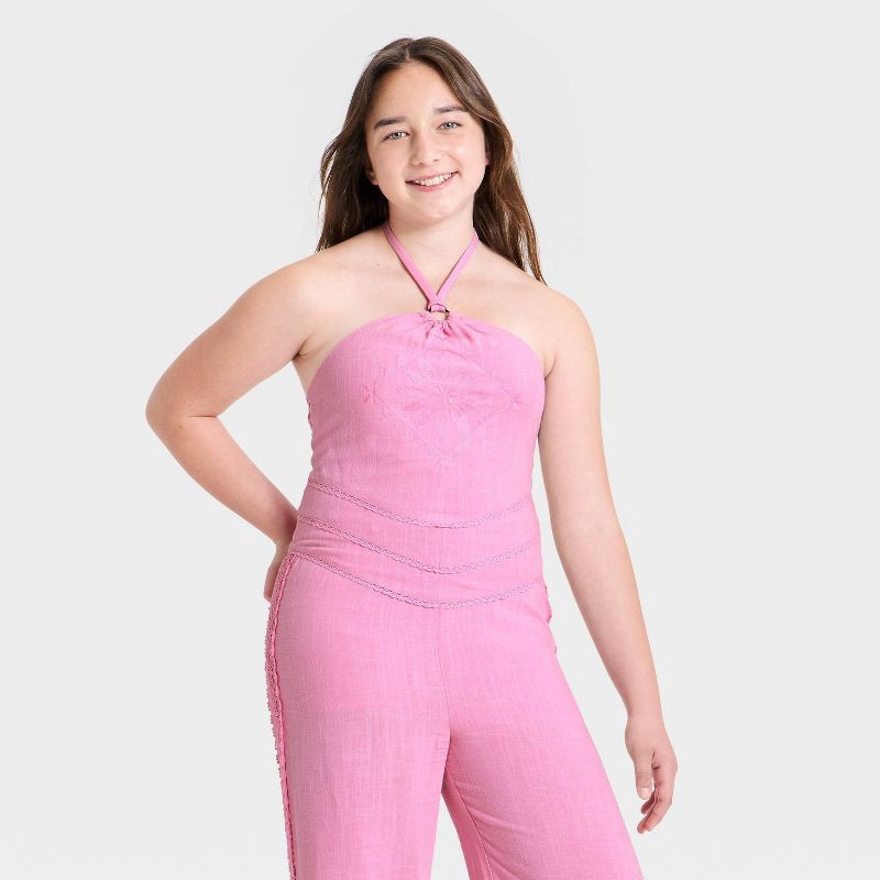 Girls' Woven Handkerchief Halter Top - art class™ Rose Pink XL