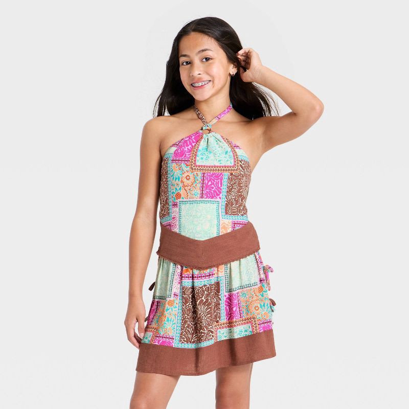 Girls' Woven Handkerchief Halter Top - art class™ Brown/Pink L