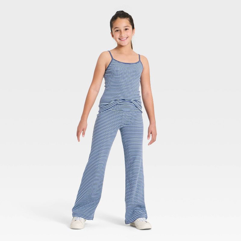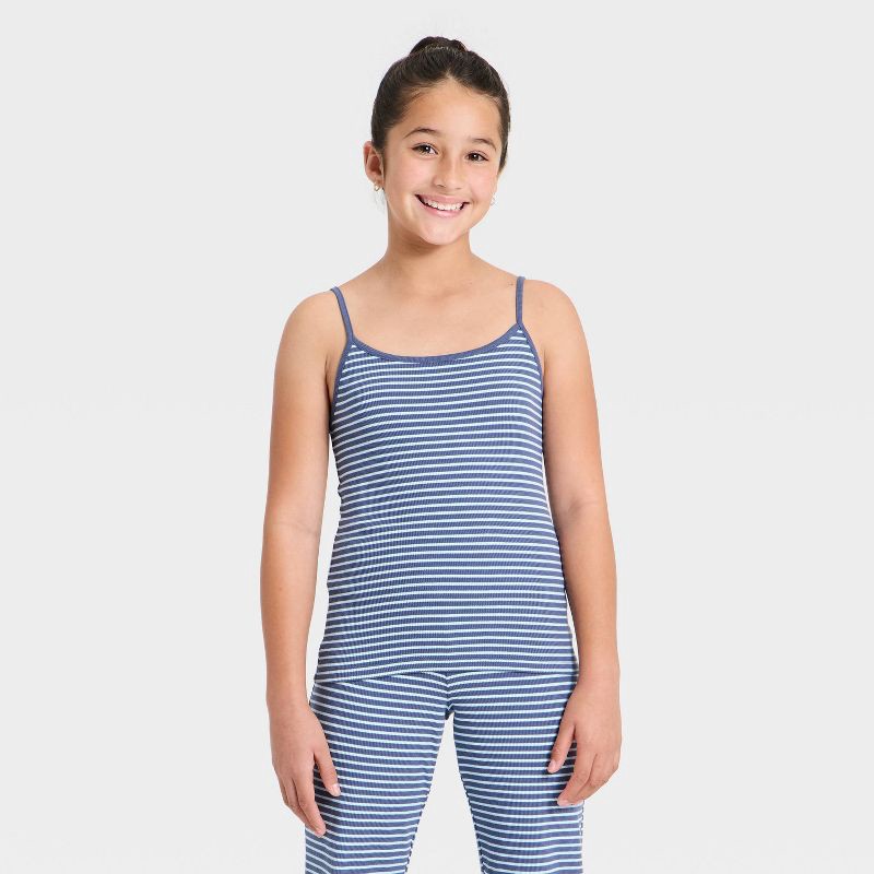 Girls' Striped Ribbed Tank Top - art class™ Blue XL