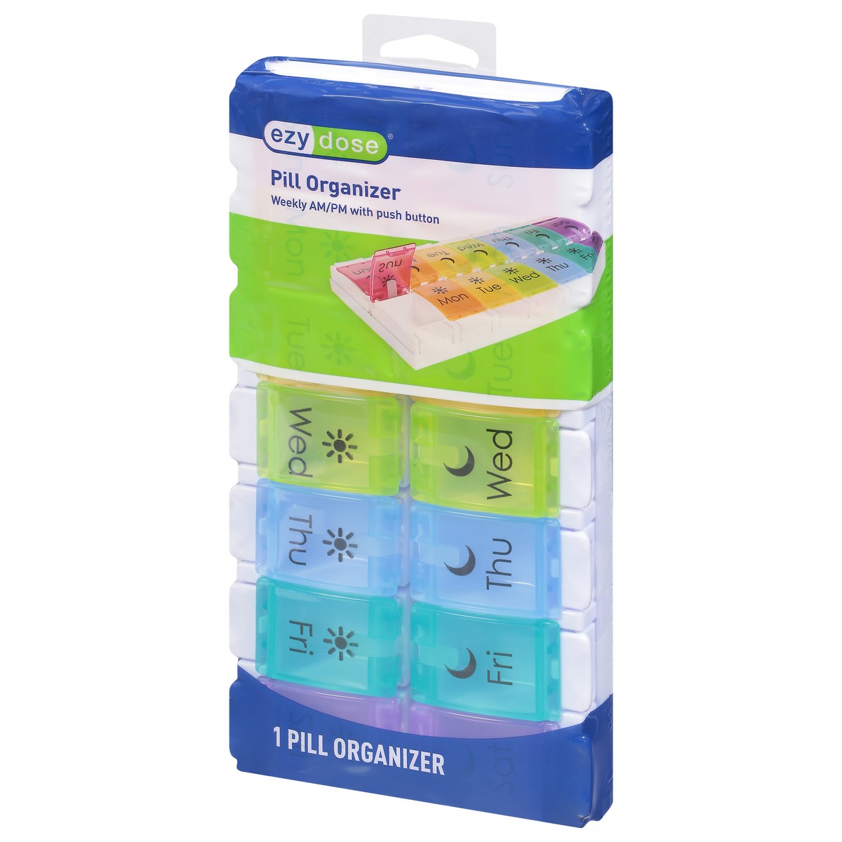 Ezy Dose is the leader in innovative, easy-to-use medication management products. This Ezy Dose Weekly Pill Organizer features push buttons that easily pop open each compartment. Push buttons are exce…