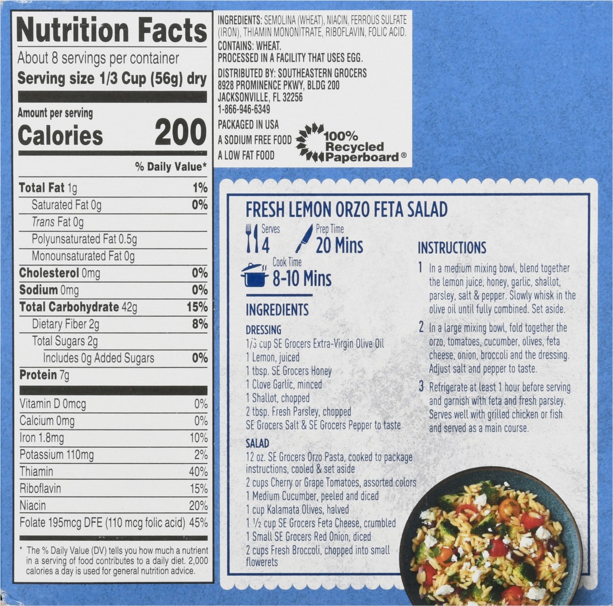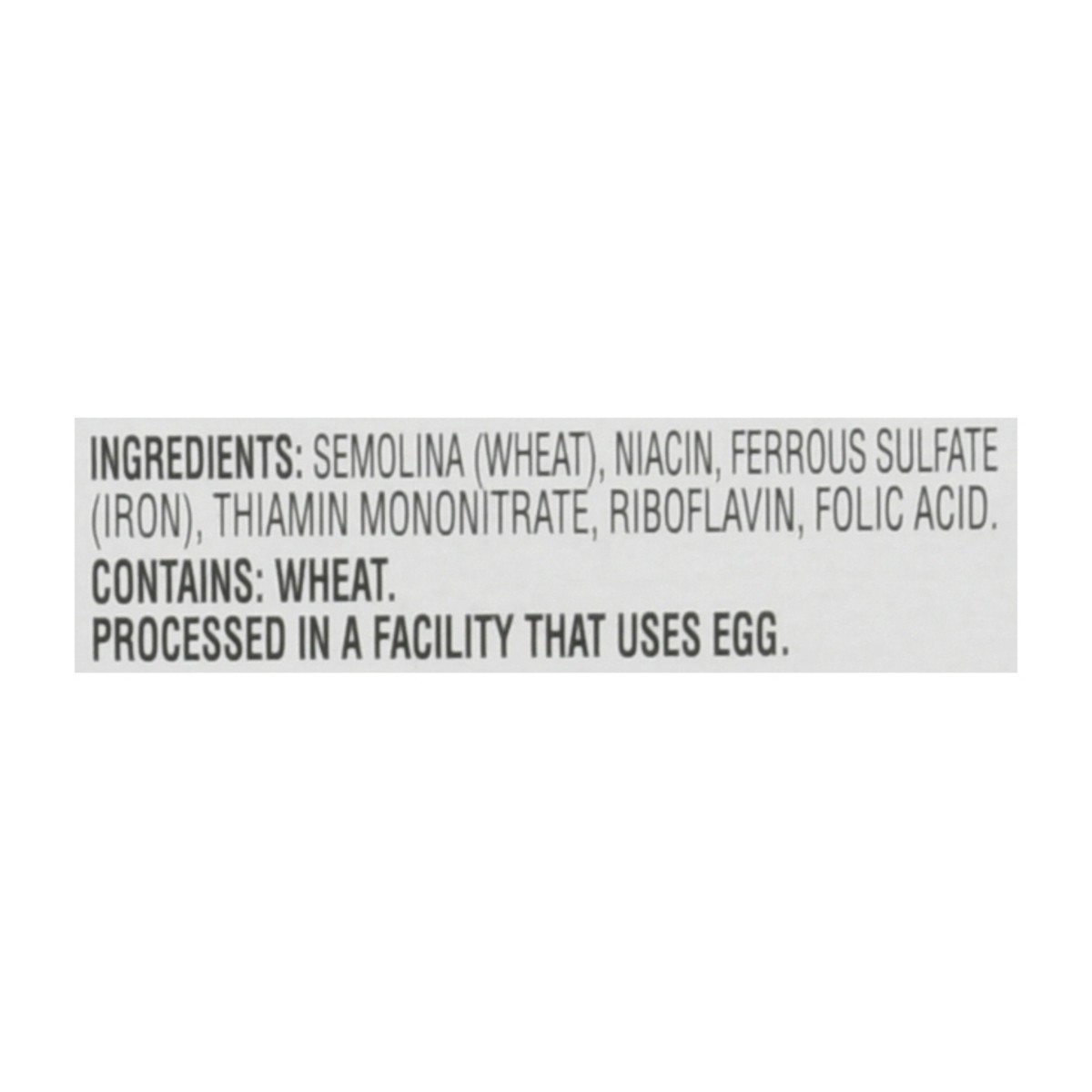 Semolina (Wheat), Niacin, Ferrous Sulfate (Iron), Thiamin Mononitrate, Riboflavin, Folic Acid.