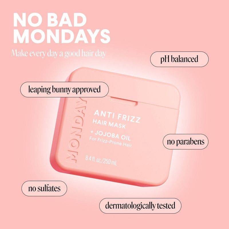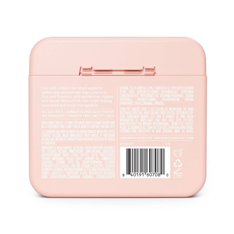 MONDAY Haircare ANTI-FRIZZ Hair Mask works to soften and smooth hair that's prone to frizz and flyaways, with protective Jojoba and Sweet Almond Oil. Hair is left feeling nourished and more manageable…