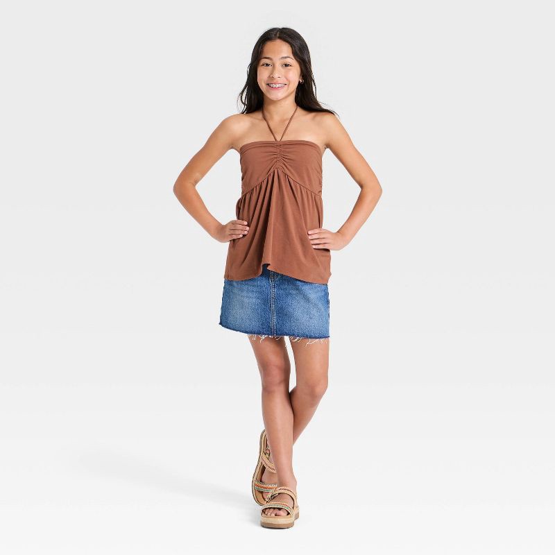 Girls' Sleeveless Halter Neck Babydoll Tank Top - art class™ Brown XL