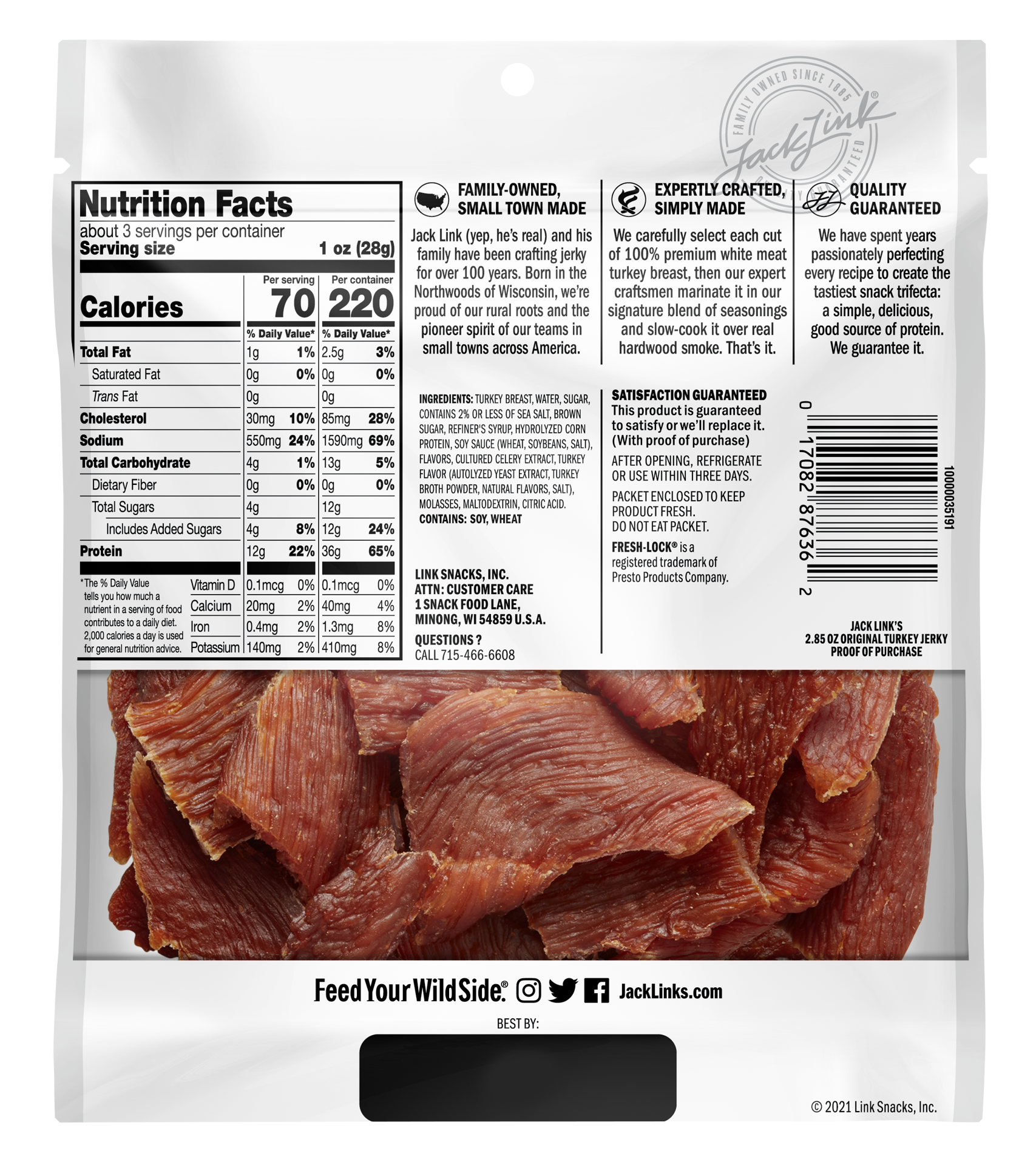 Jack Links Turkey Jerky Original - 2.85 Oz