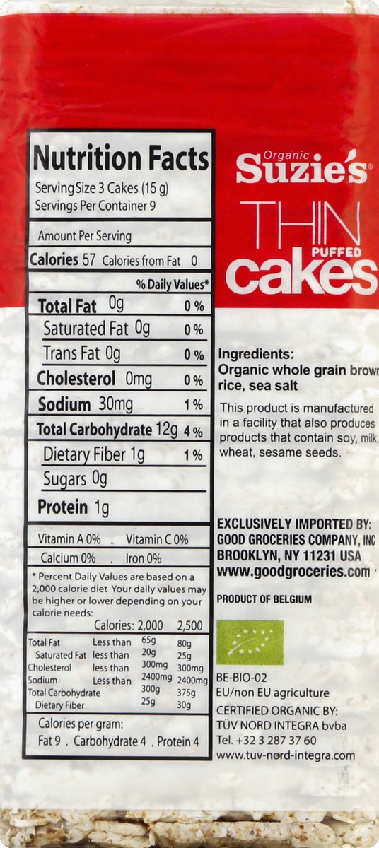 Suzies Crackers Puffed Cakes Thin Brown Rice Lightly Salted - 4.9 Oz