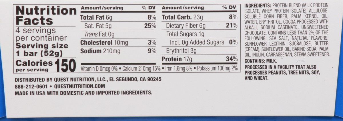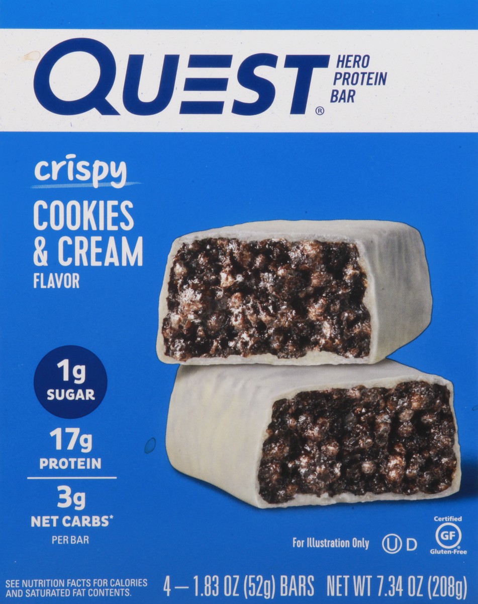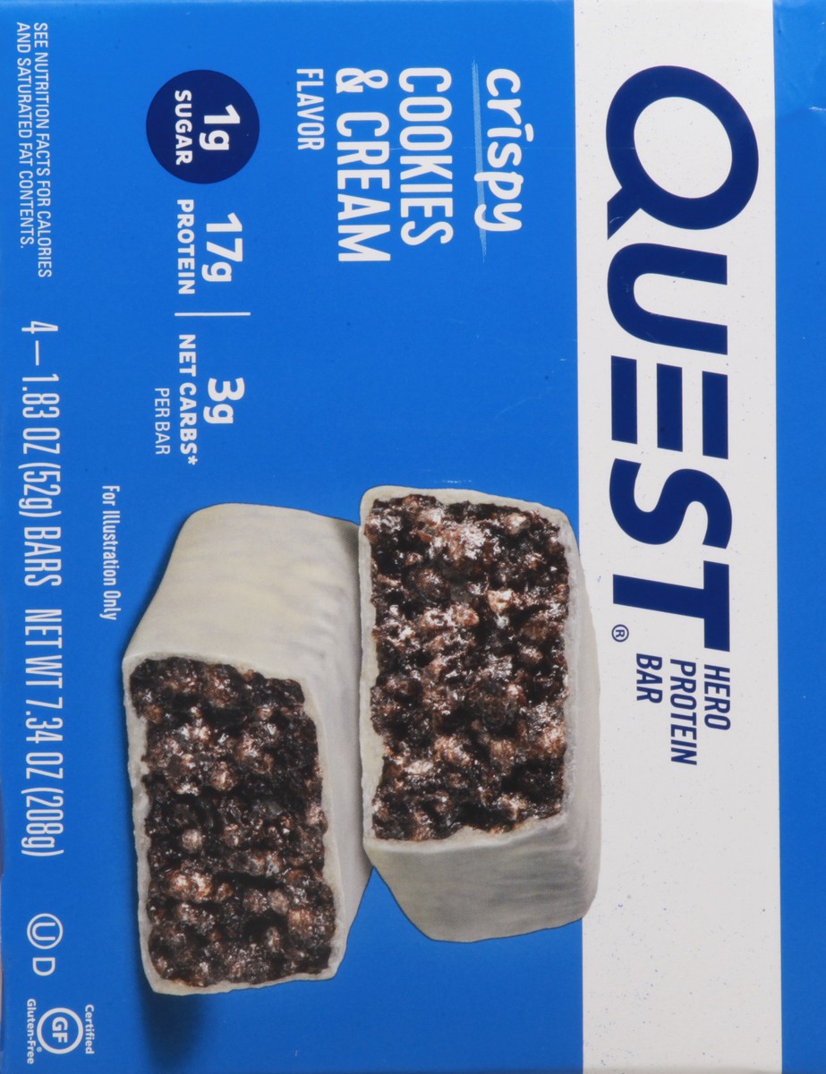 Quest Hero Cookies & Cream Flavor Protein Bar, 4 - 1.83 oz Bars